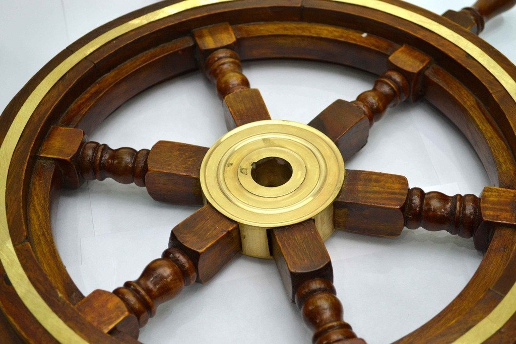 थोरइंस्ट्रूमेंट्स (डिवाइस के साथ) नॉटिकल शिप व्हील ब्रास एक्सेंट बोट व्हील (18 इंच)