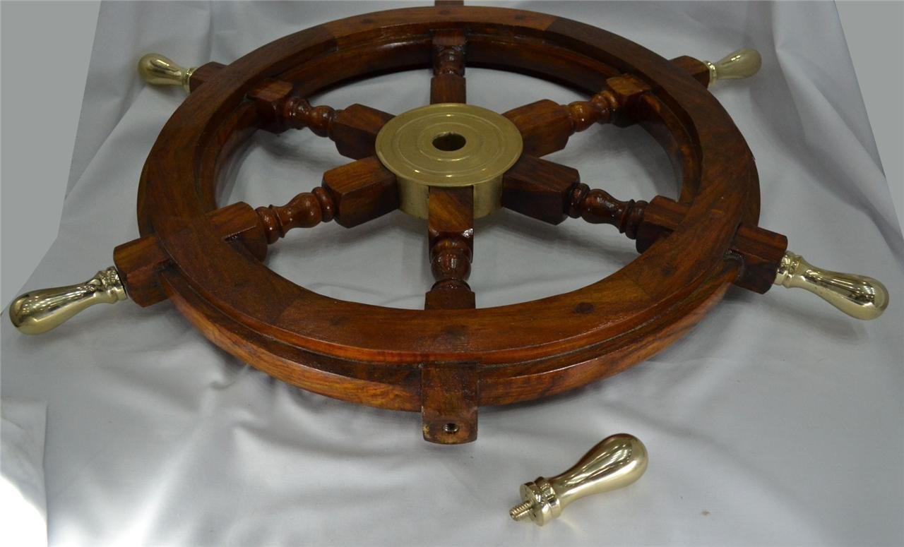 थोरइंस्ट्रूमेंट्स (डिवाइस के साथ) थोर 24 इंच डेकोरेटिव शिप व्हील - ब्रास सिक्स स्पोक के साथ हैंडमेड हार्ड-वुड