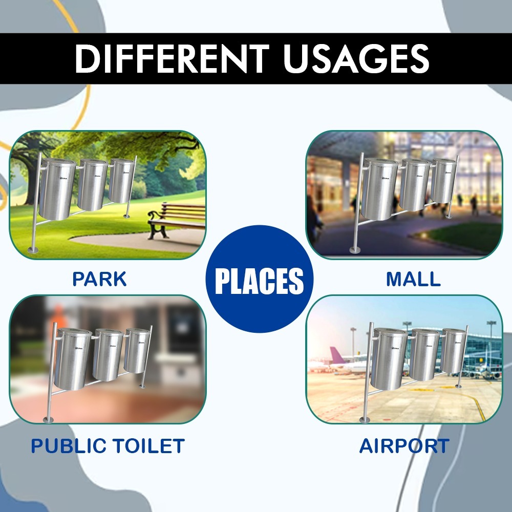 तीन इन वन स्टील ट्रियो डस्टबिन