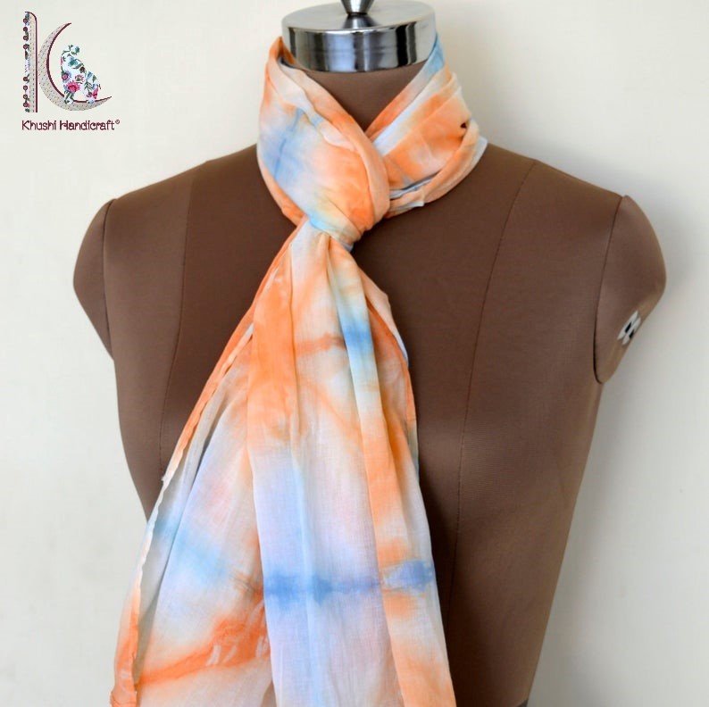 ऑरेंज एंड स्काई ब्लू टाई डाई प्रिंटेड स्टोल