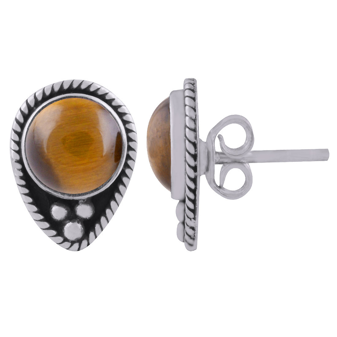 टाइगर आई नेचुरल जेमस्टोन 925 स्टर्लिंग सॉलिड सिल्वर राउंड काबोचोन स्टोन हैंडमेड स्टड इयररिंग्स लिंग: महिलाएं