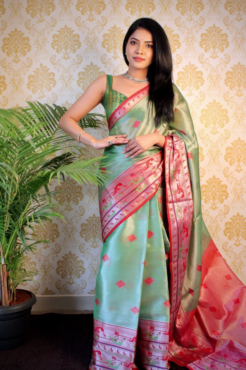 एथनिक पहनावे के लिए रैपियर सिल्क मीना जरी वर्क साड़ी