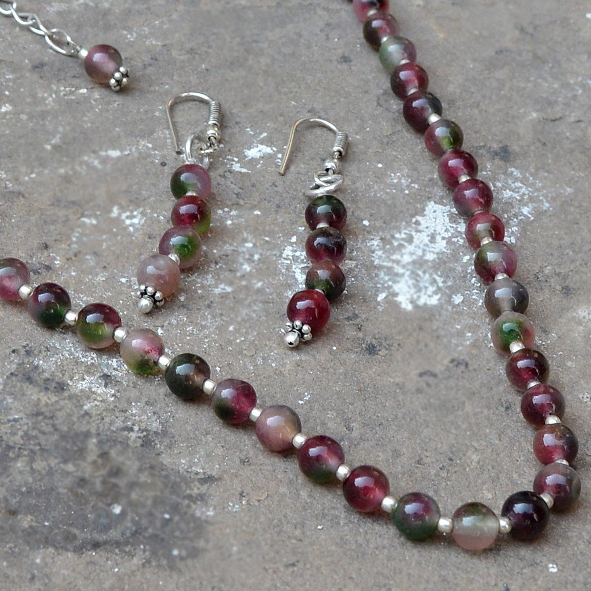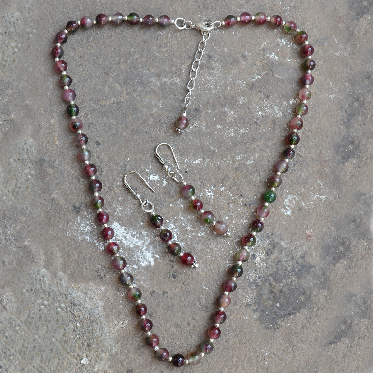 टूमलाइन क्वार्ट्ज सिल्वर नेकलेस सेट Pg-156679 आकार: 0.6x47 Cm.