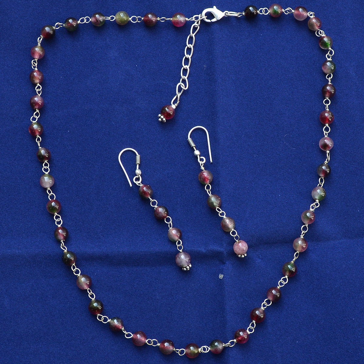 टूमलाइन क्वार्ट्ज़ सिल्वर नेकलेस सेट Pg-156680 आकार: 0.6x47 Cm.
