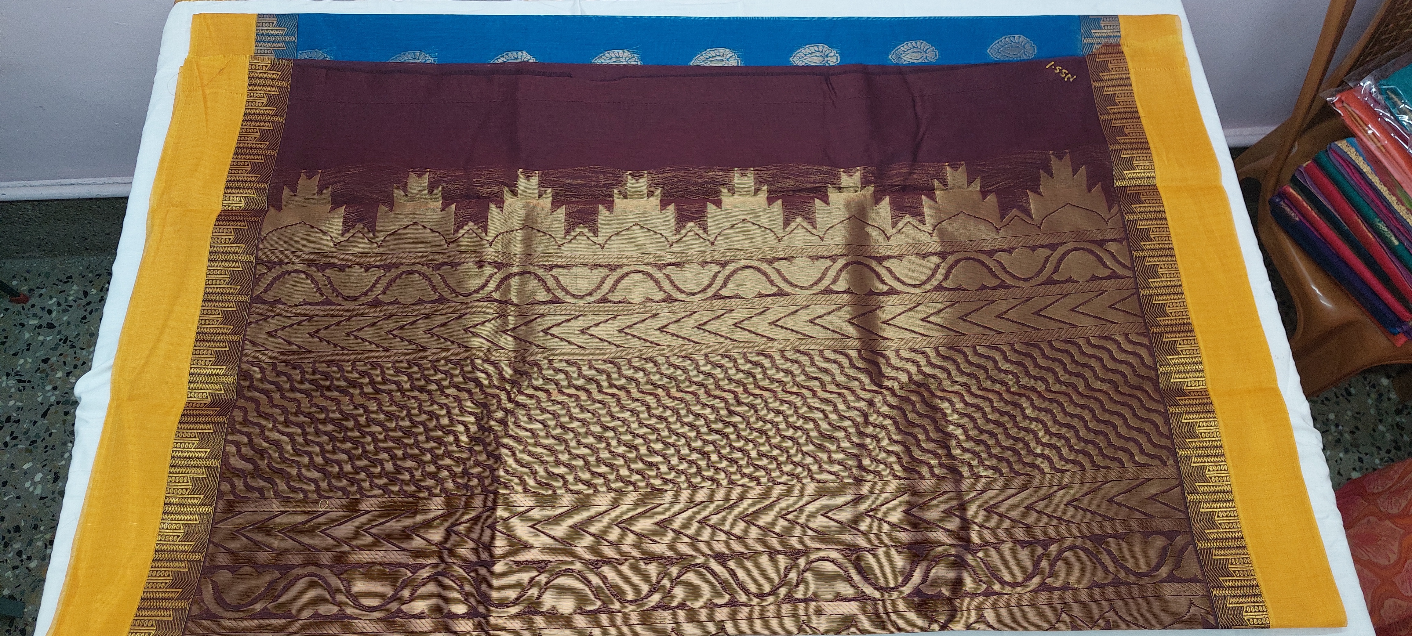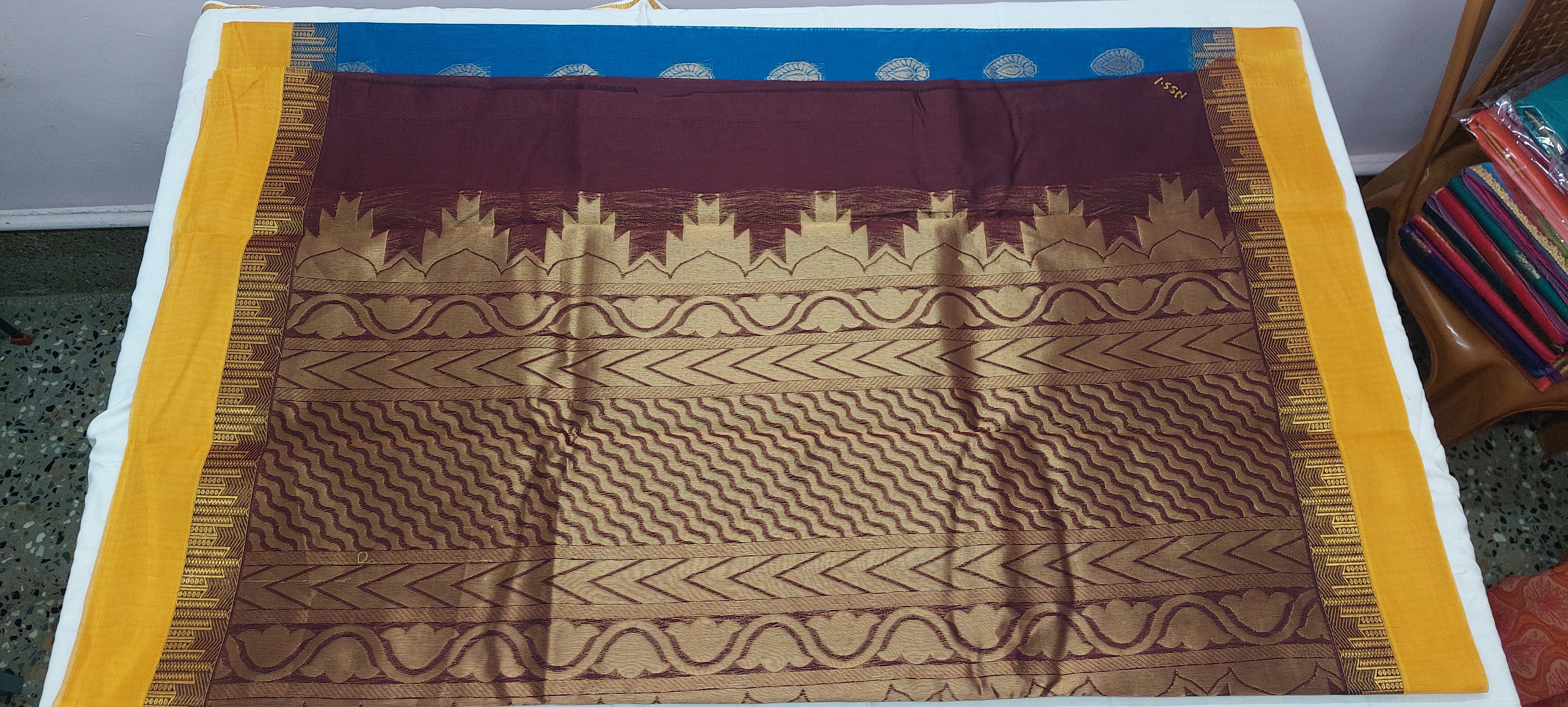 ब्लाउज पीस सेट कॉटन साड़ी के साथ कैज़ुअल वियर के लिए येलो फैंसी हैंड वर्क
