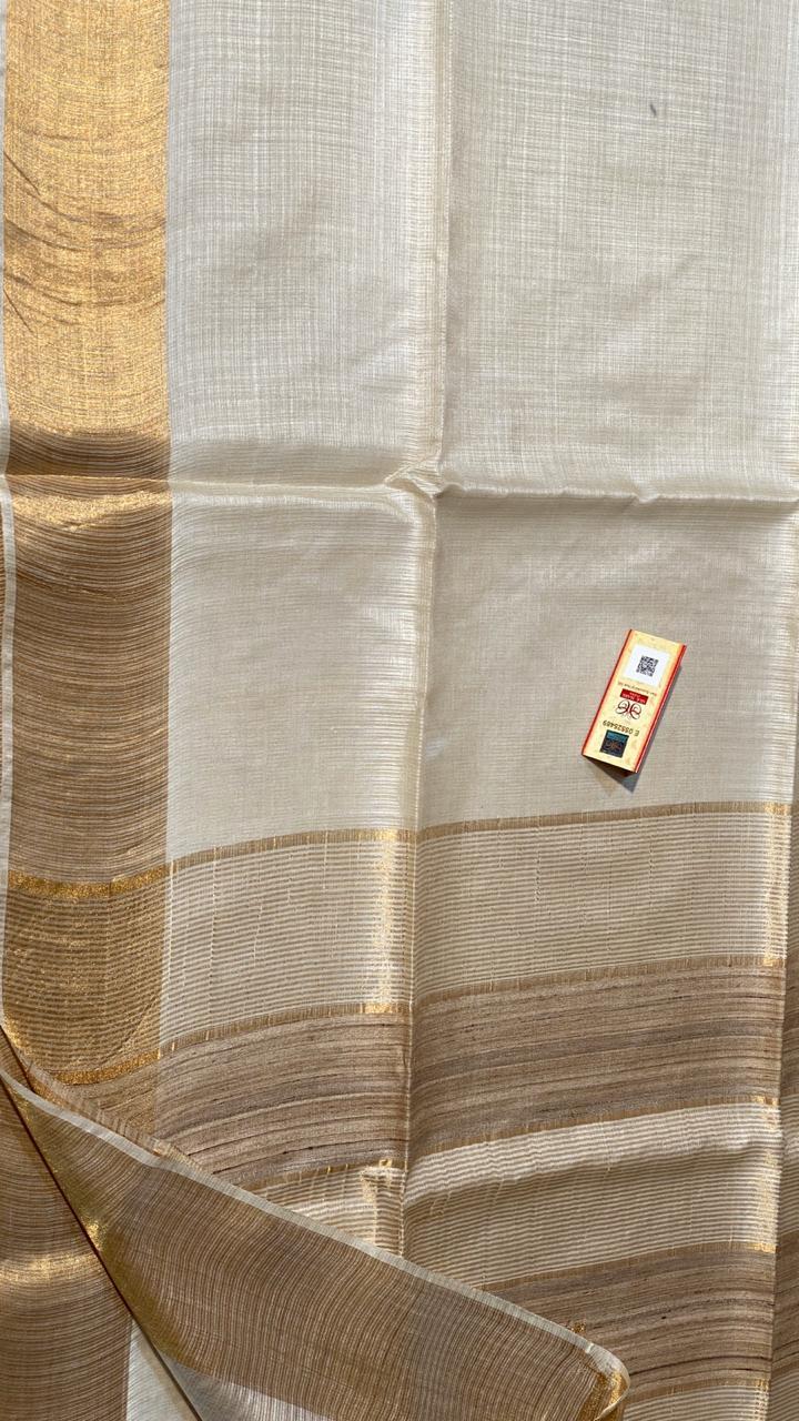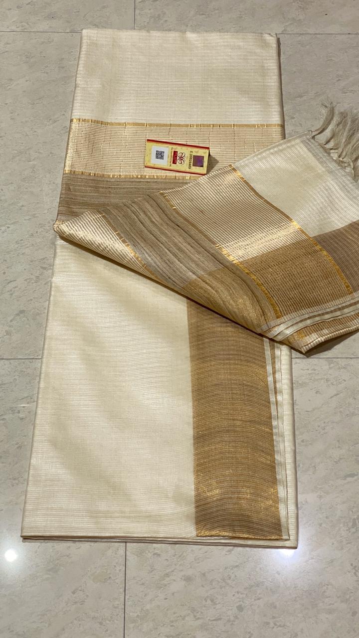 पार्टी वियर ट्रेडिशनल एवरग्रीन गोल्डन बॉर्डर प्योर टसर सिल्क साड़ी.