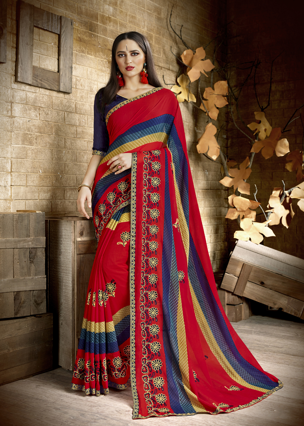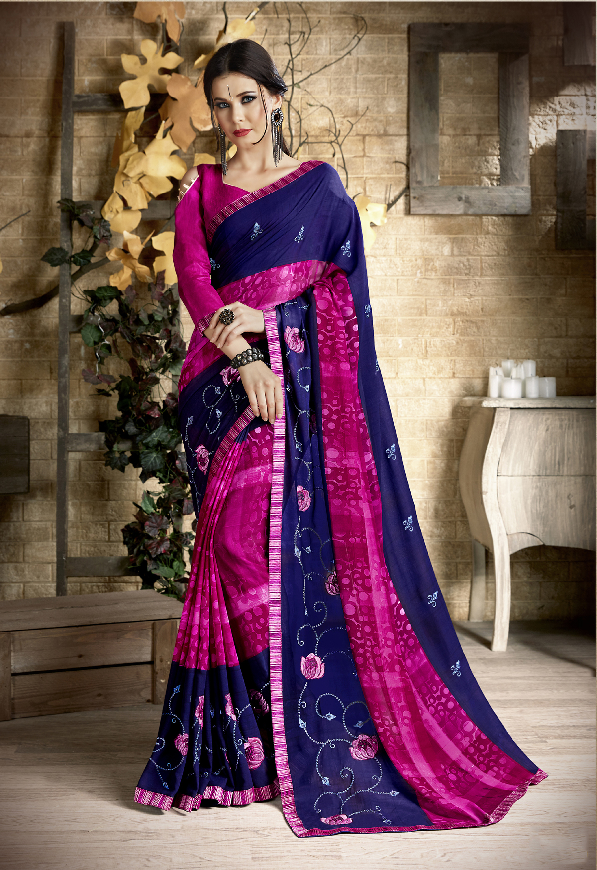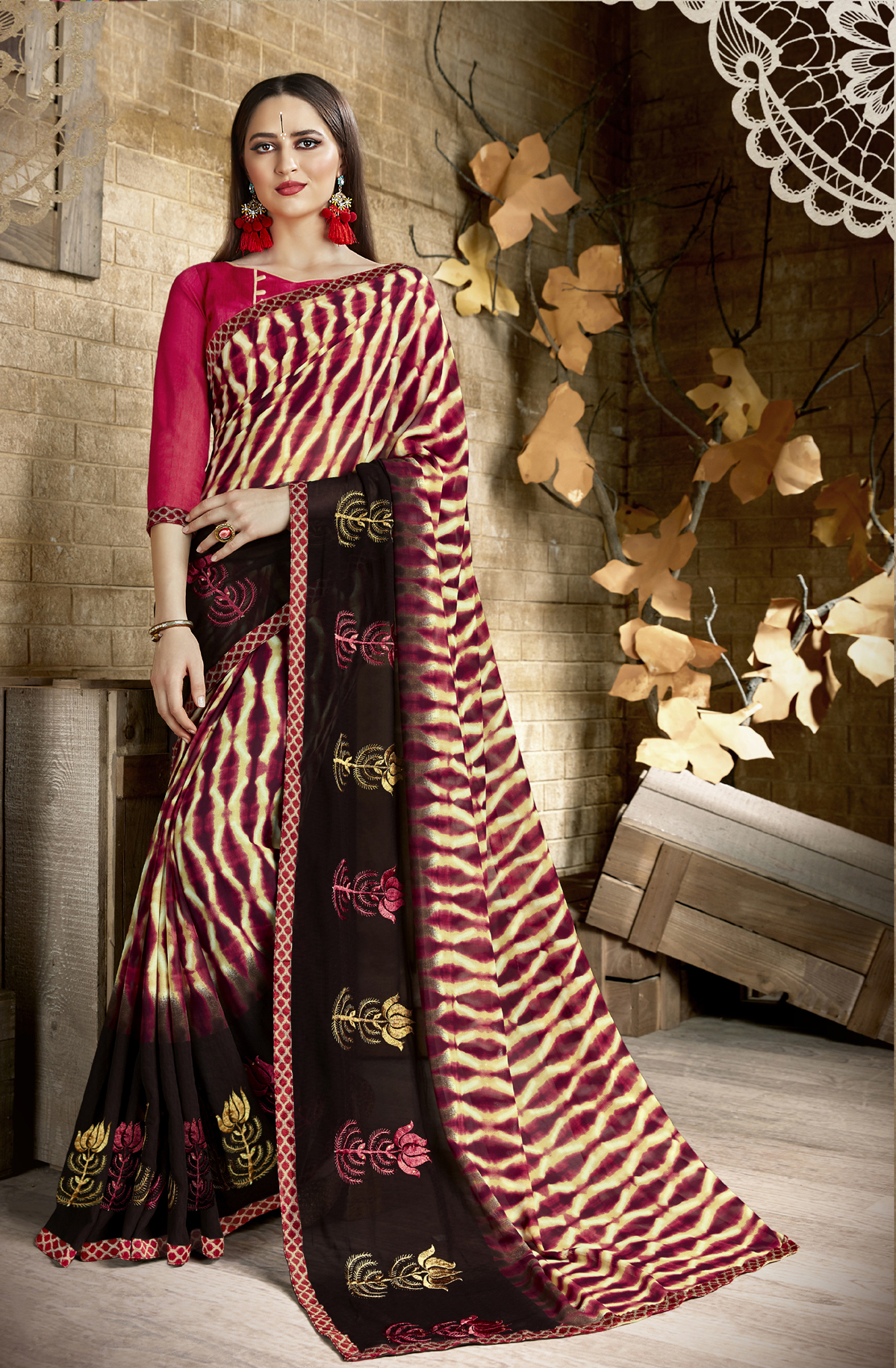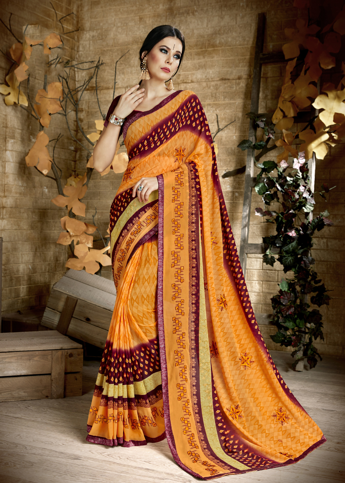 इमेज के अनुसार पारम्परिक जॉर्जेट साड़ी