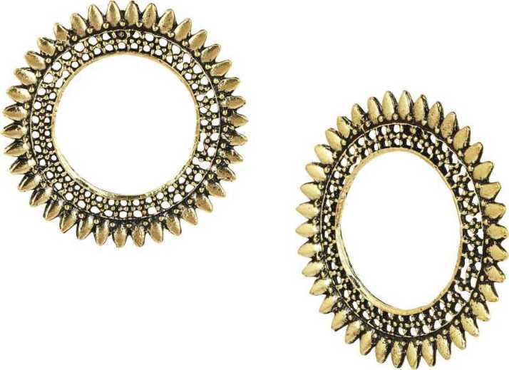 Explore in english - Stylish Golden Oxidized Round Shaped Antique Earrings