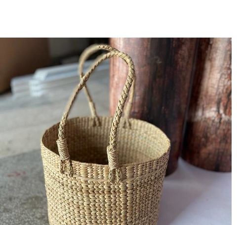 हाथ से बनी बड़ी गोल कऊना समुद्री घास की टोकरी जिसमेंHandles हैं
