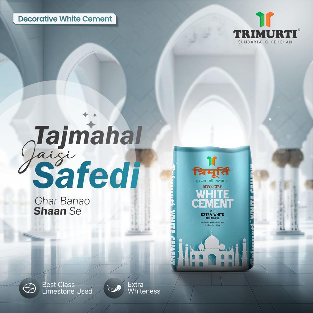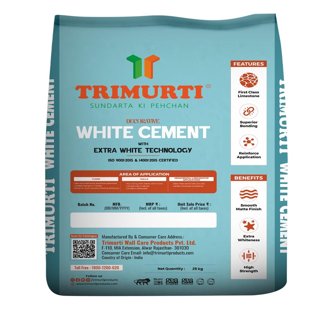 त्रिमूर्ति 25 किलो सजावटी सफेद सीमेंट अनुप्रयोग: आंतरिक और बाहरी