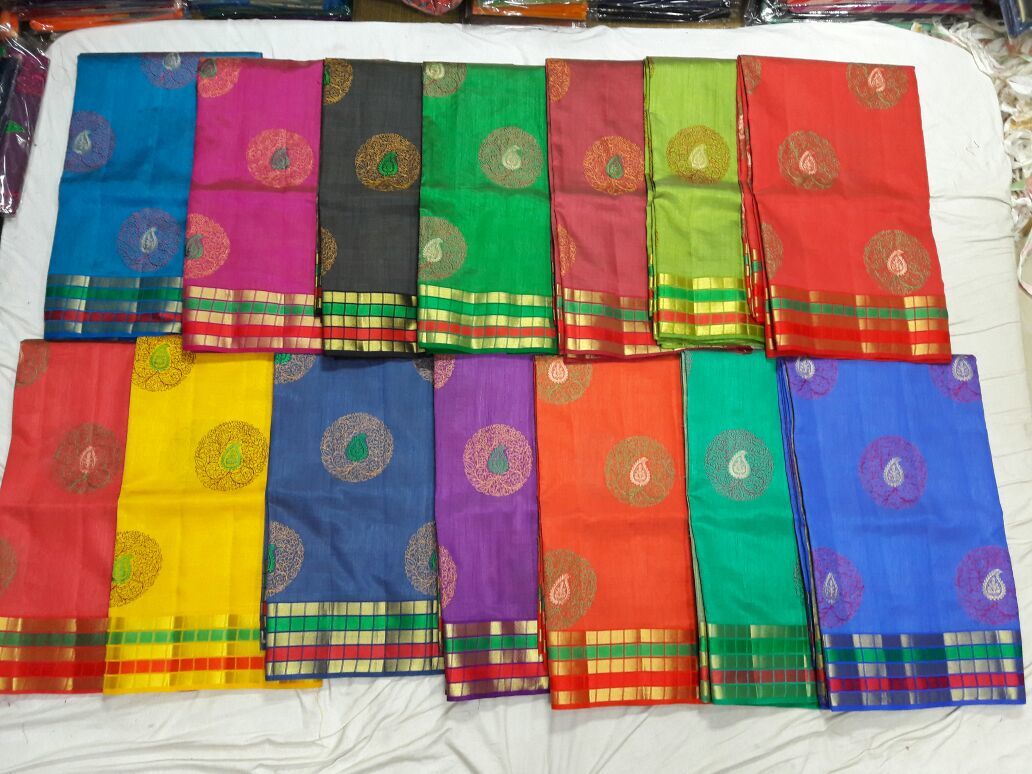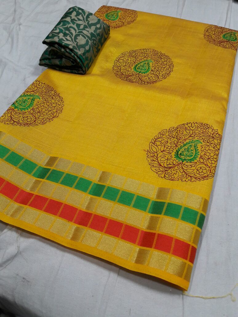 Explore in english - Tussar Silk Round Design Embroderry Saree With Extra Jacquard Blouse