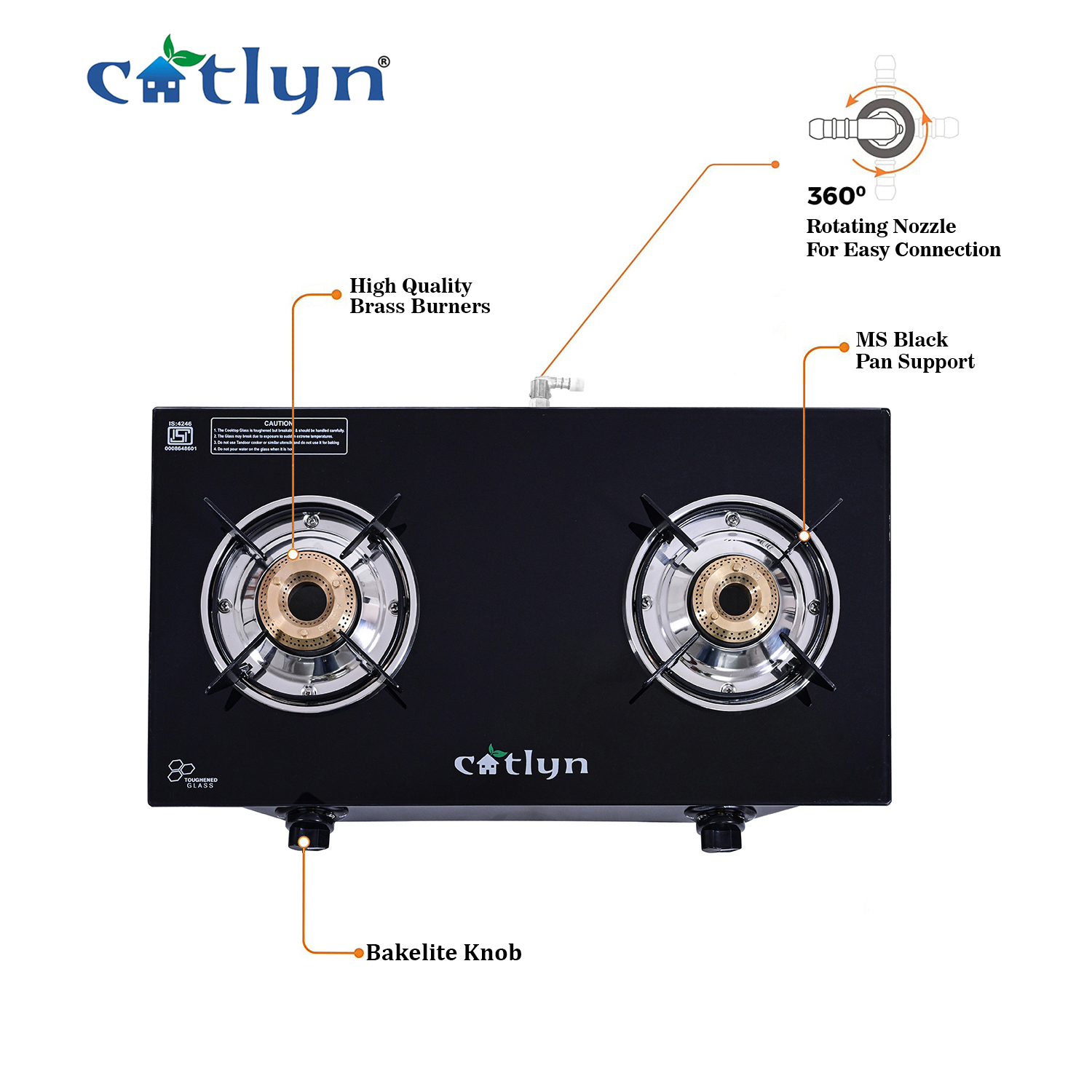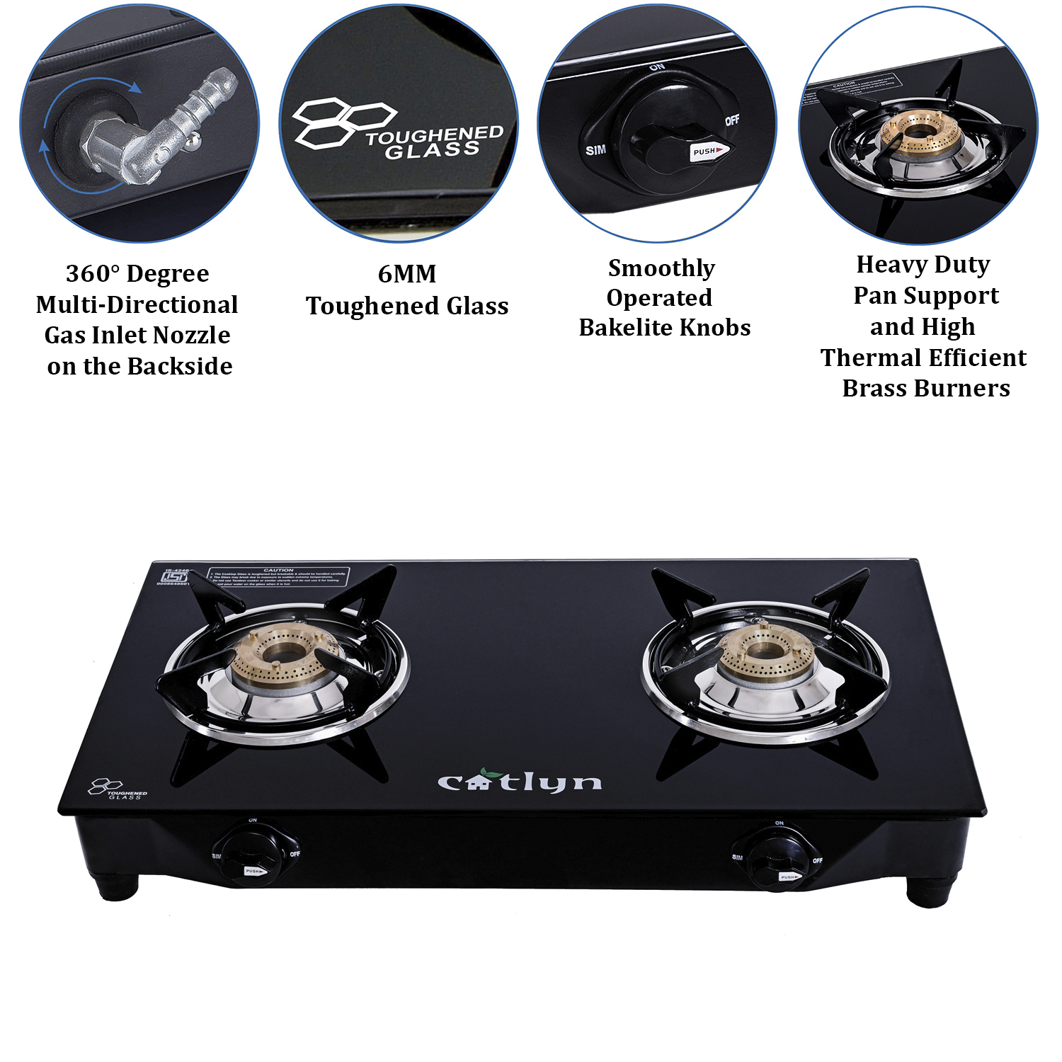 Explore in english - Two Burner Crystal Black Glass Stove (Candid 2B MS)