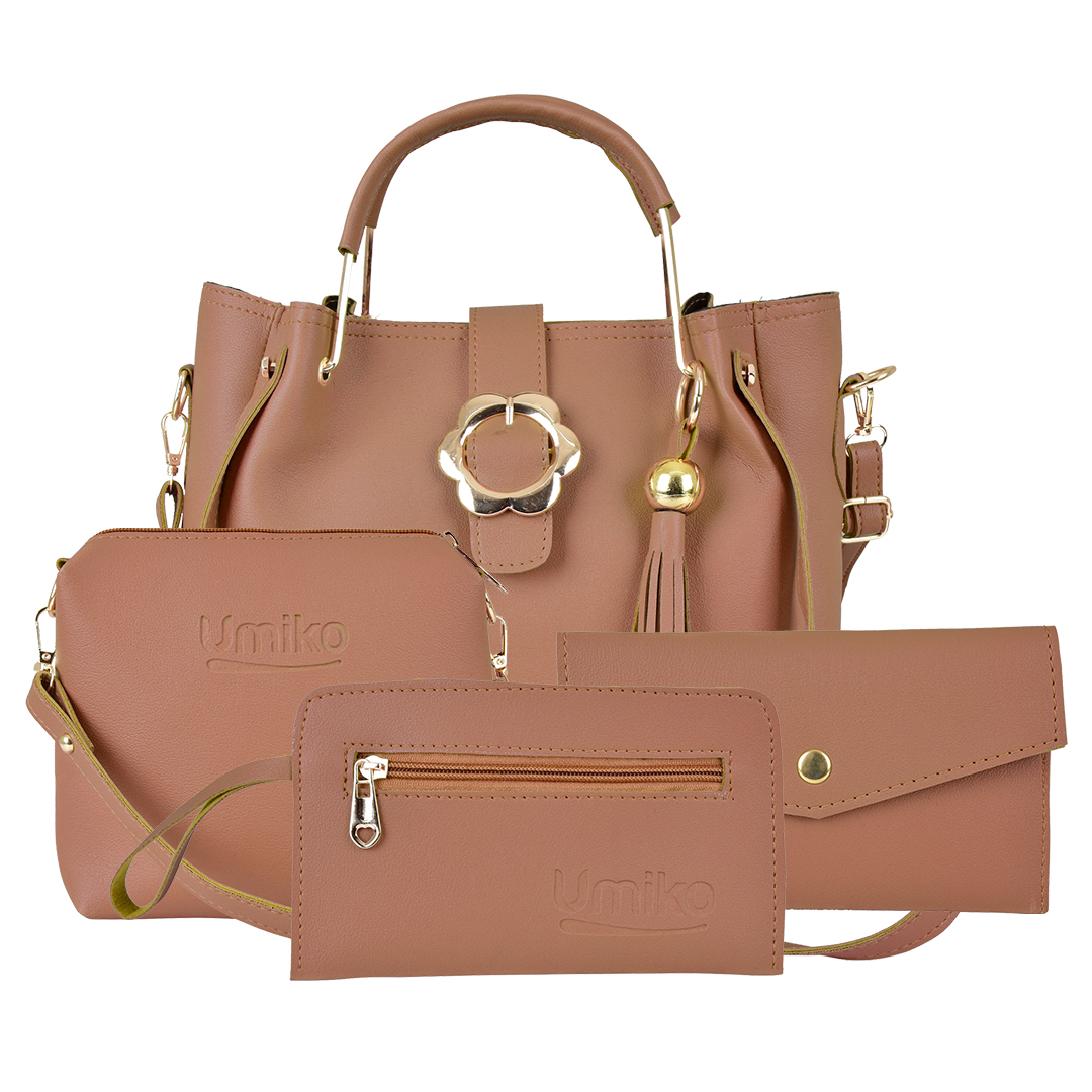 उमिको पु लेदर हैंड बैग्स महिलाओं के लिए प्रीमियम लाइनिंग के साथ (4 बैग्स का कॉम्बो)