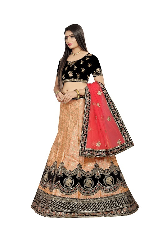 4 रंगों में उपलब्ध वेलवेट और आर्ट बनारसी सिल्क वूवन लहंगा