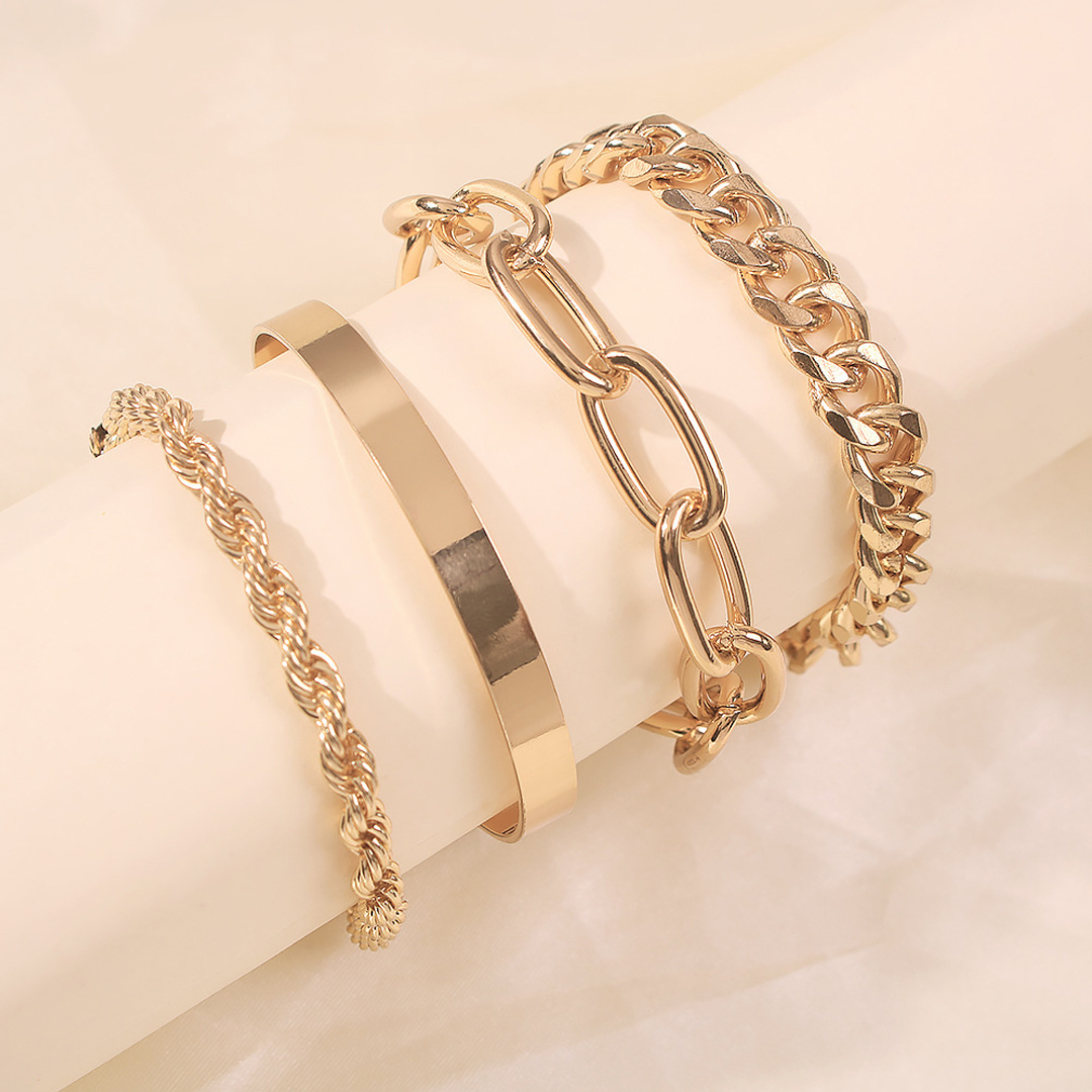 Explore in english - Combo of 4 Gold Plated Chain Linked Chunky Bracelets