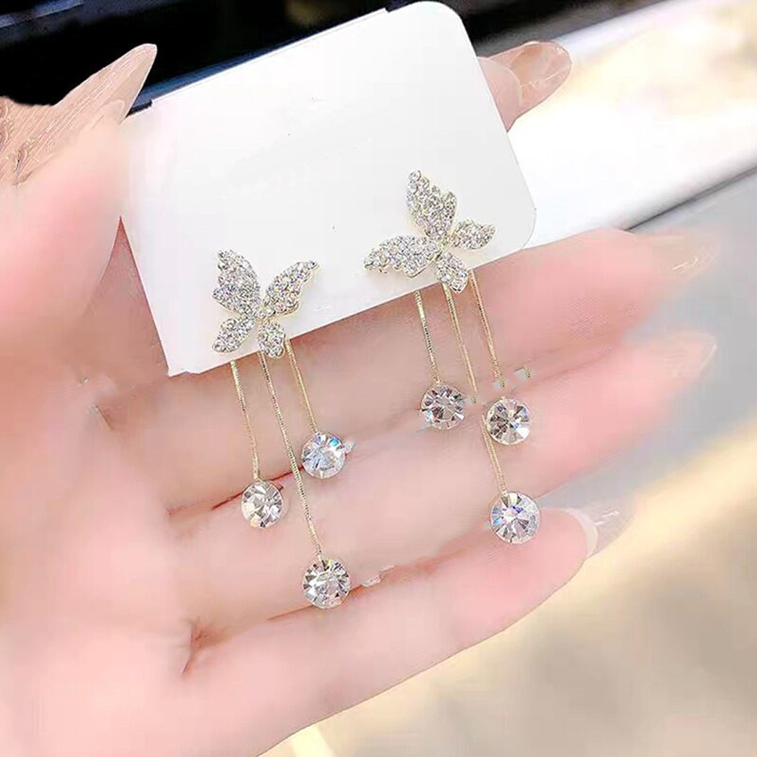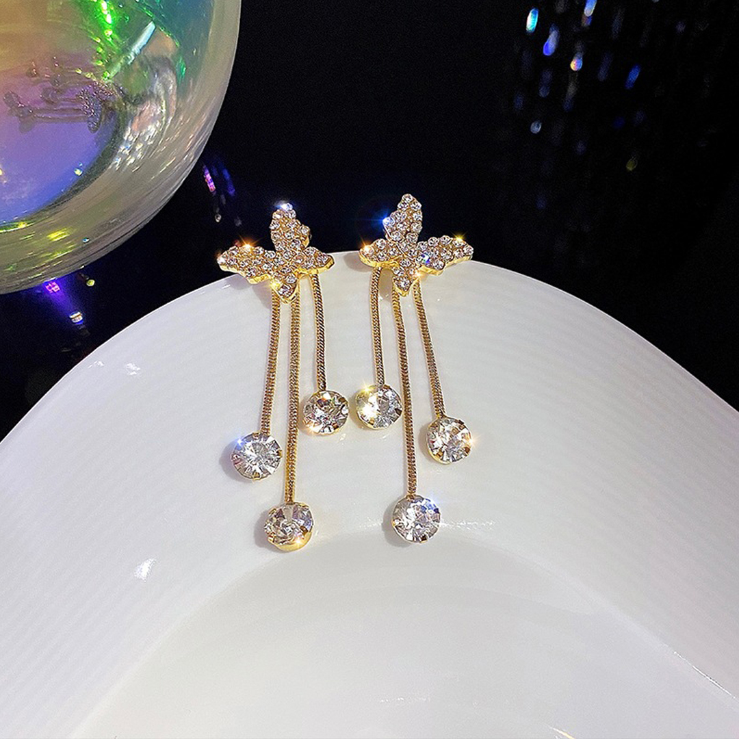 Explore in english - Korean French Studded Butterfly Tassel Earrings 2 Pcs/Set