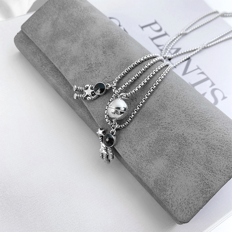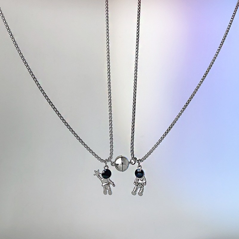 Explore in english - 2 Pcs Ball Magnet Astronaut Couple and Friendship Lockets Necklace