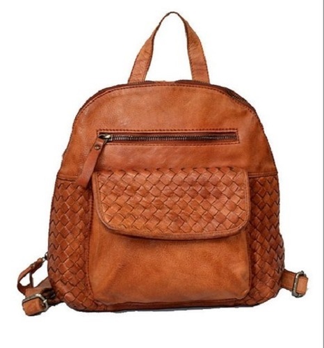 मॉइस्चर प्रूफ बहुत विशाल और हल्के वज़न का प्लेन और टैन ब्रेडेड बैकपैक बैग रोज़ाना पहनने के लिए
