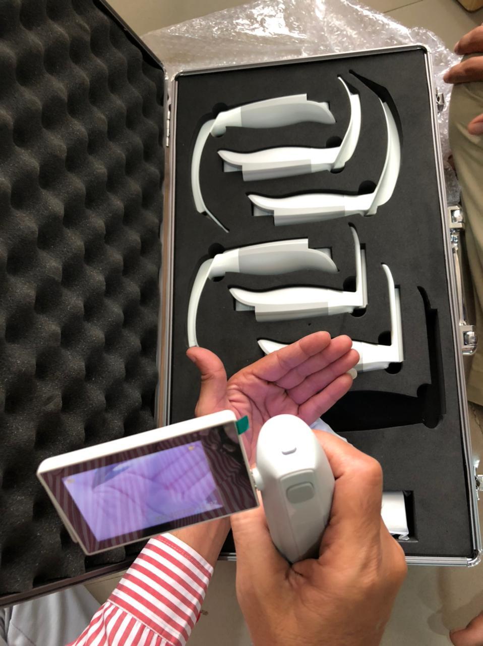वीडियो लेरिंजोस्कोप कलर कोड: सफ़ेद/गुलाबी