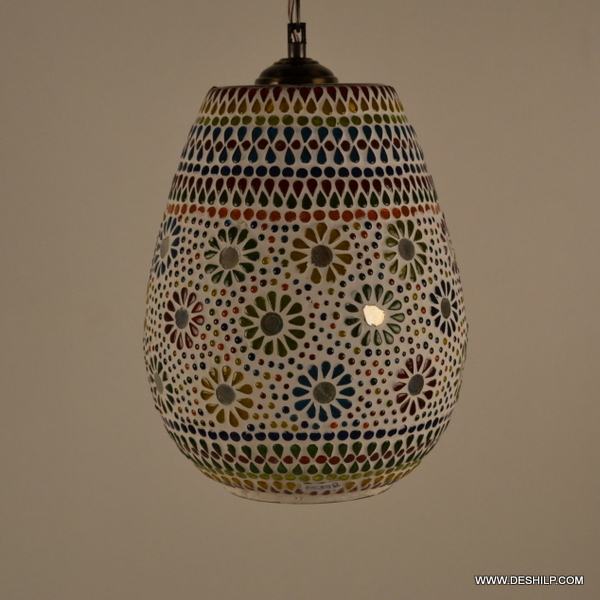 मल्टीकलर विंटेज एंटीक मोज़ेक हैंगिंग लैम्प्स हैंडक्राफ्टेड कलरफुल ग्लास हैंगिंग