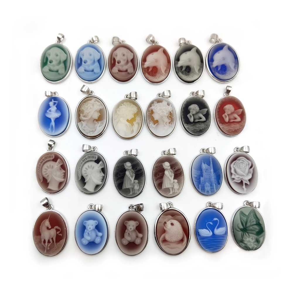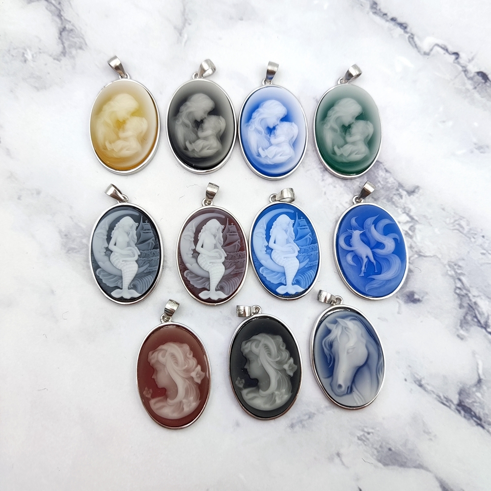 Explore in english - Vintage Carved Agate Cameo Gemstone Pendant