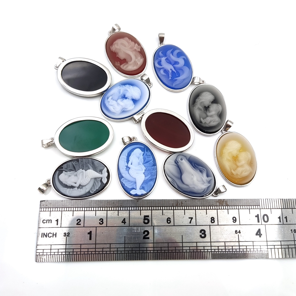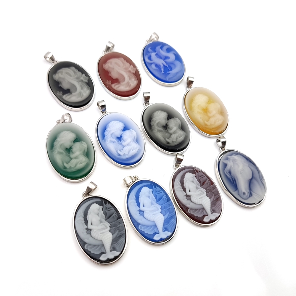 ओवल विंटेज नक्काशीदार एगेट कैमियो जेमस्टोन पेंडेंट