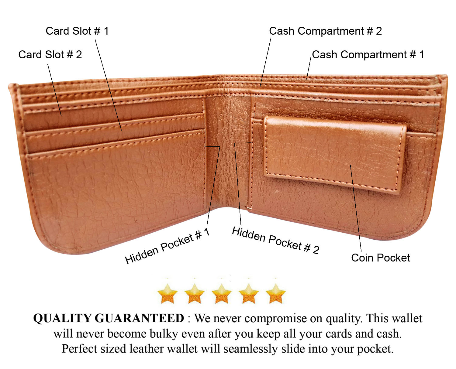 Explore in english - Mens Wallet PU Leather Tan Bi-Fold Gents Purse