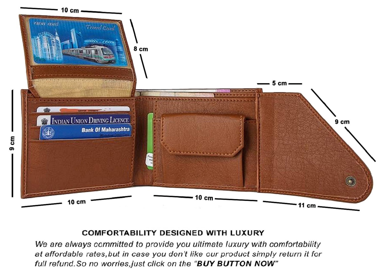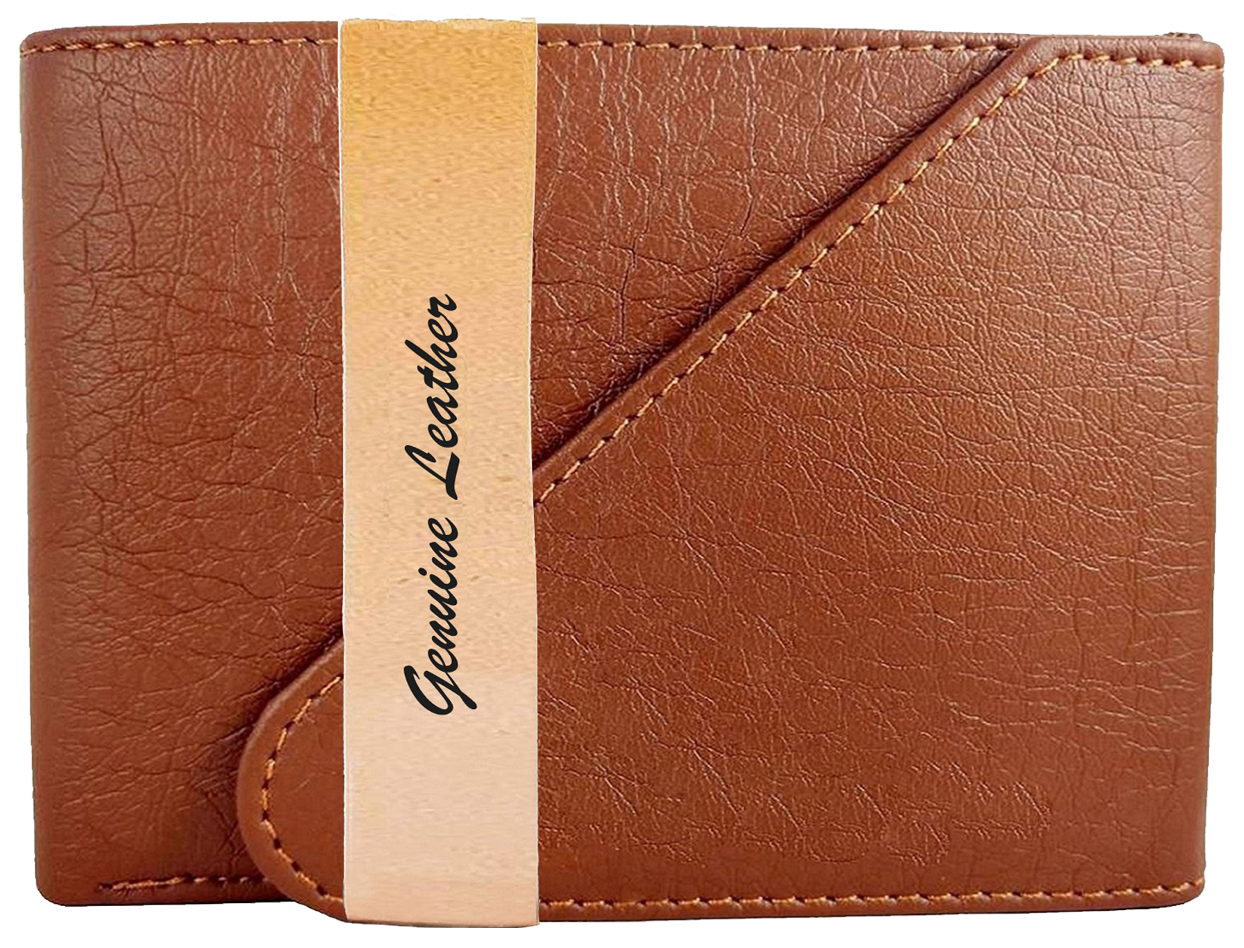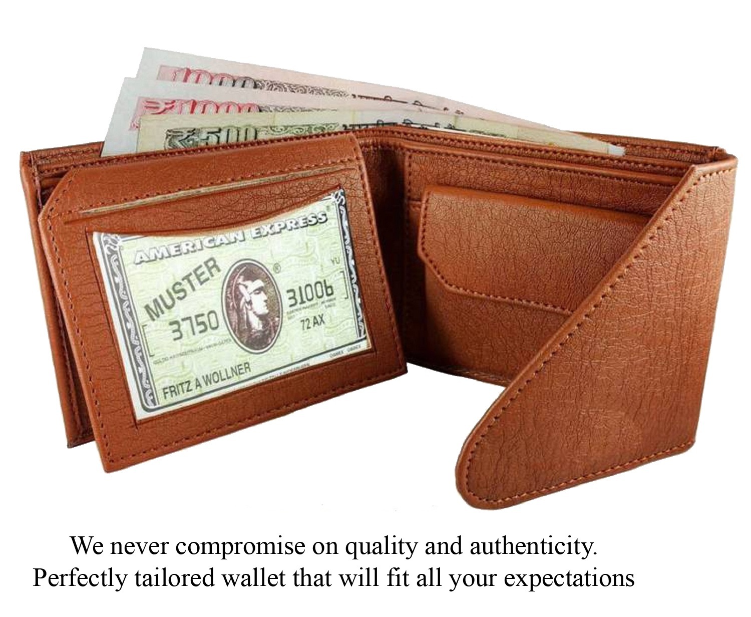 Explore in english - Mens Wallet PU Leather Tan Tri-Fold Gents Purse