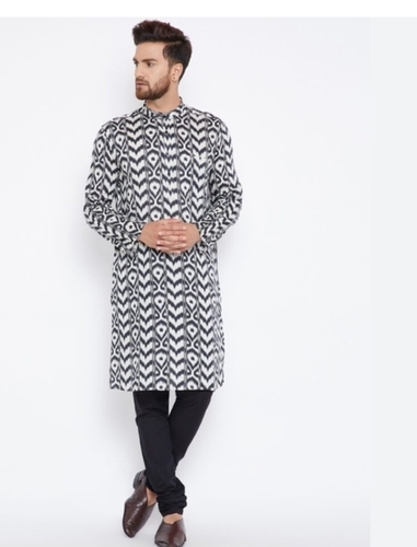 वॉशेबल फुल स्लीव काले और सफेद प्रिंटेड पुरुषों का कुर्ता