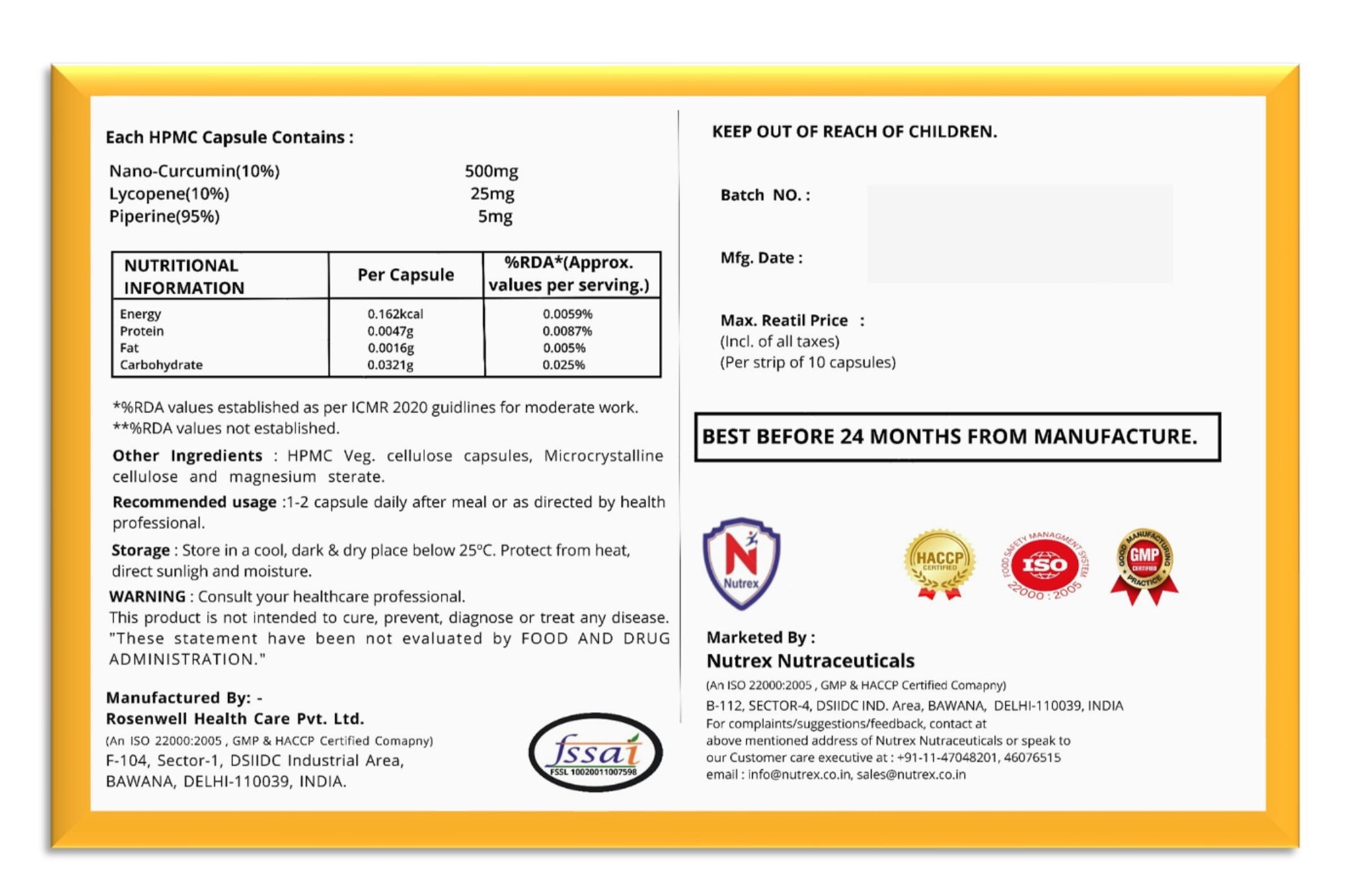 | सामग्रियां | Nano-Curcumin, Lycopene & Piperine |