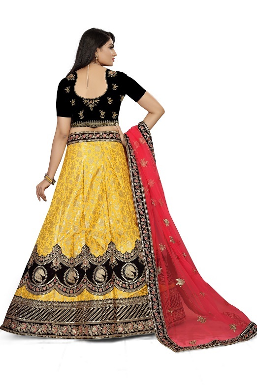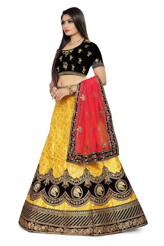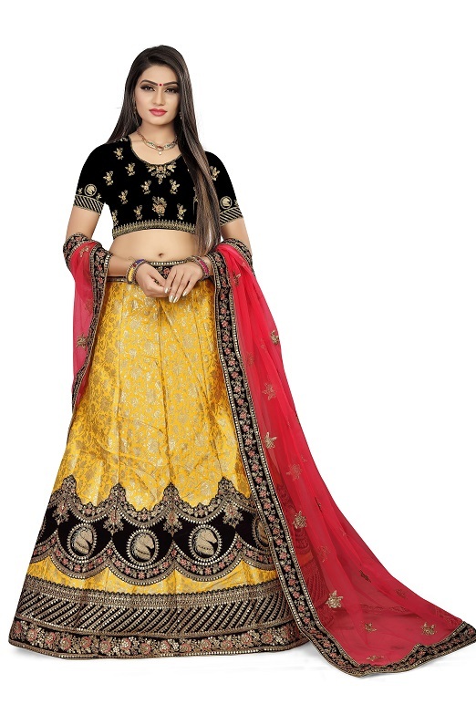 4 रंगों में उपलब्ध वेलवेट एंड आर्ट बनारसी सिल्क वूवन फैंसी लहंगा चोली