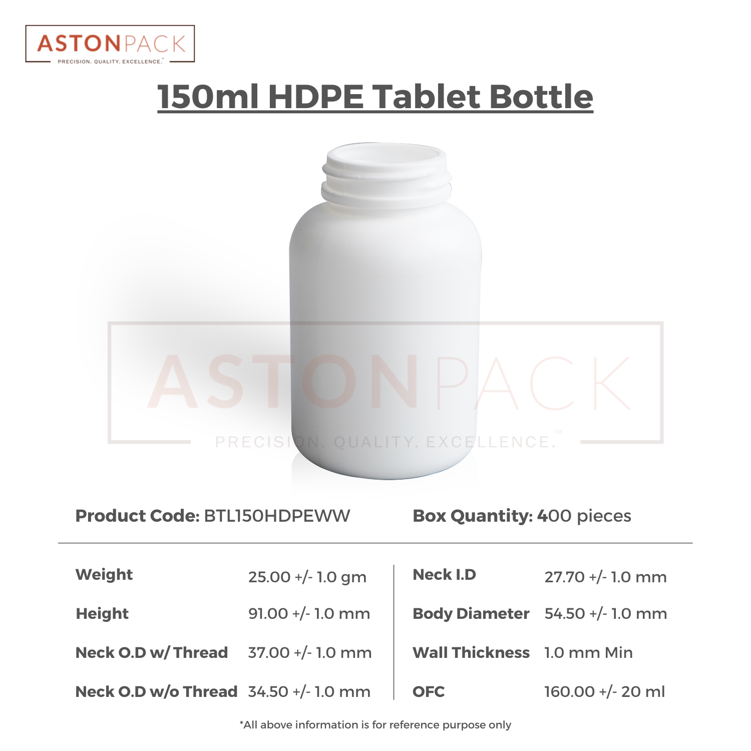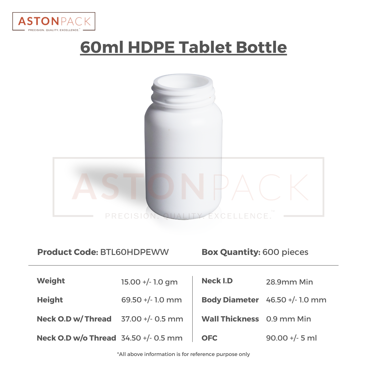 हर्बल टैबलेट पैक करने के लिए सफेद प्लास्टिक की बोतल (फार्मा ग्रेड)