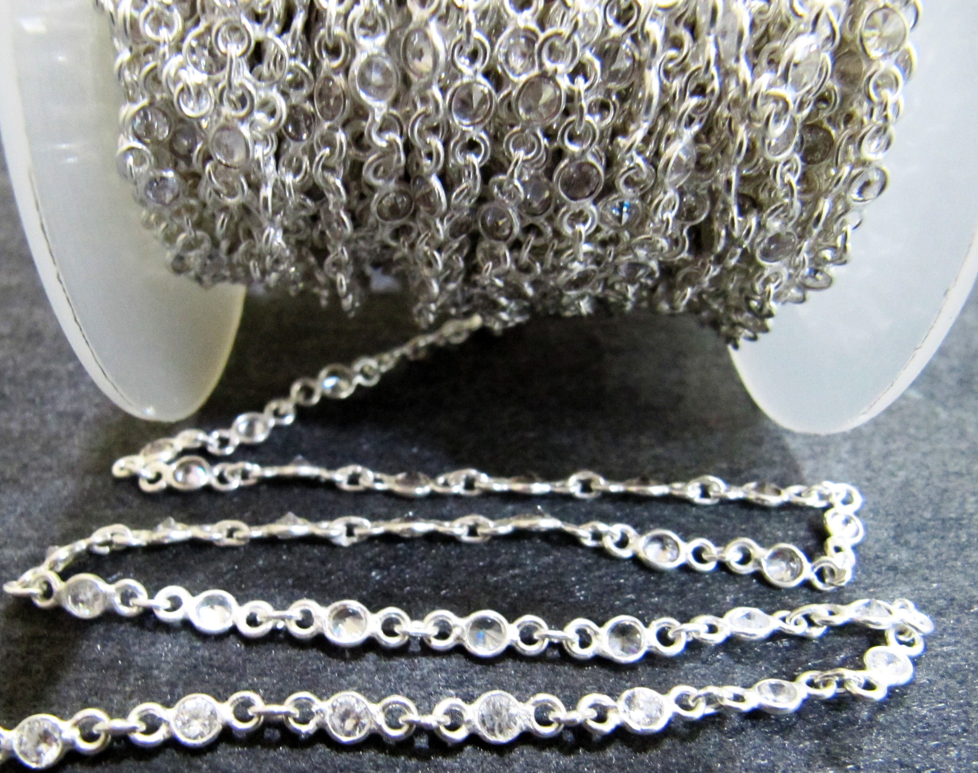 Explore in english - 92.5% Sterling Silver White Round Cubic Zirconia 4mm bezel Chain Sold Per Feet