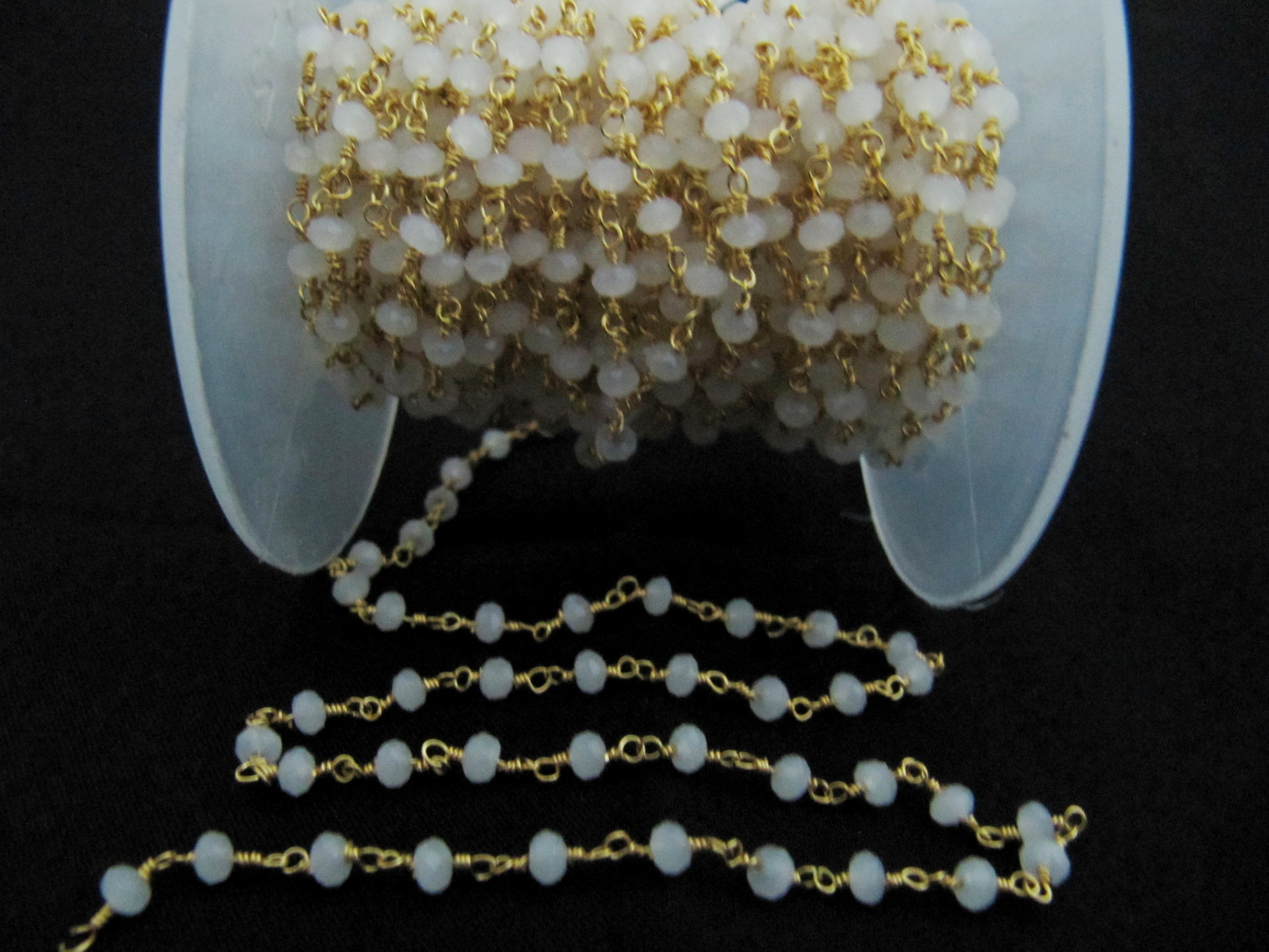 व्हाइट जिक्रोन 4 मिमी राउंड कट कनेक्टर चेन