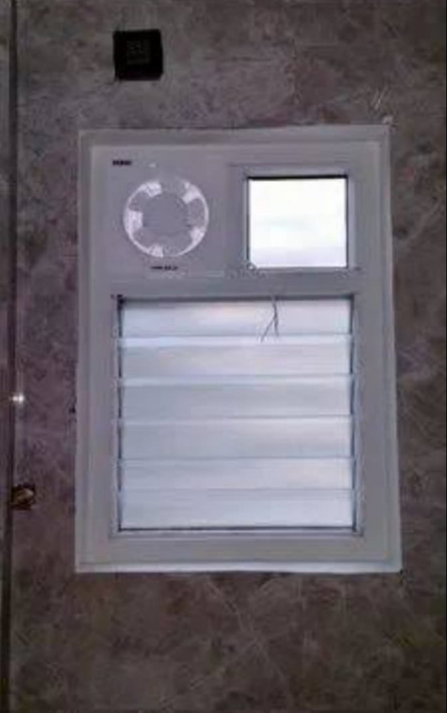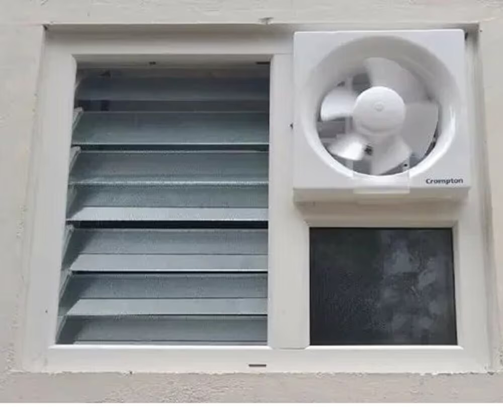 एग्जॉस्ट के साथ व्हाइट विंडो लौवर