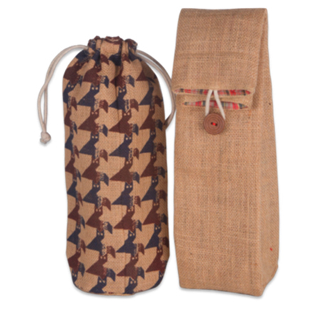 ड्रॉस्ट्रिंग के साथ ब्राउन वाइन बॉटल बैग और बटन के साथ फोल्डेबल बैग