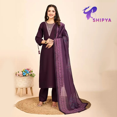 महिलाओं का कपास मिश्रण कुर्ता पैंट दुपट्टा सेट