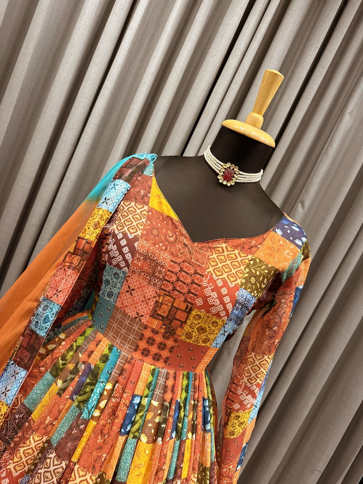 फोर साइड लेस ब्रोडर गाउन के साथ महिला डिजिटल प्रिंट...