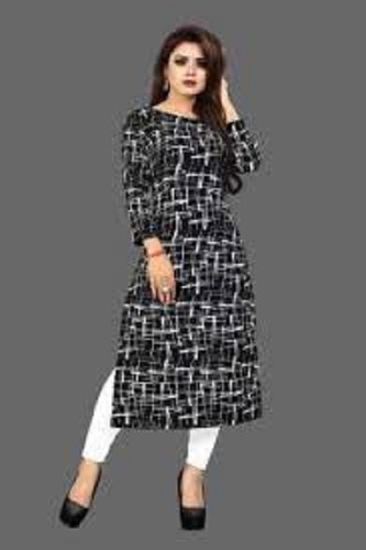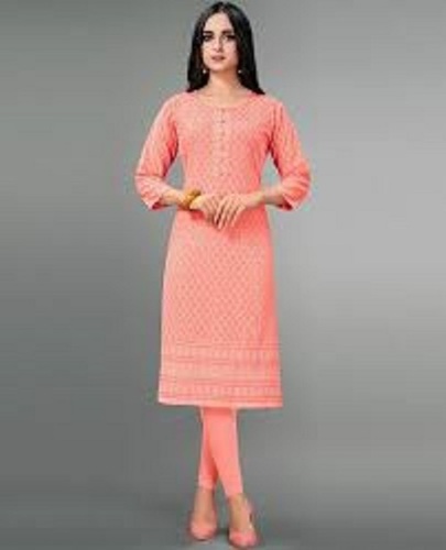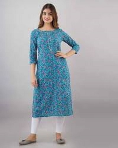हल्की और आरामदायक गोल गर्दन 3/4 स्लीव पीली प्रिंटेड महिलाओं की कुर्ती का आयाम (L*w*h): 94*112*147* सेंटीमीटर (Cm)
