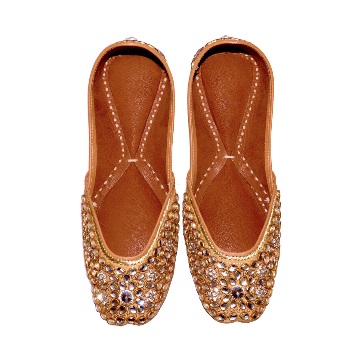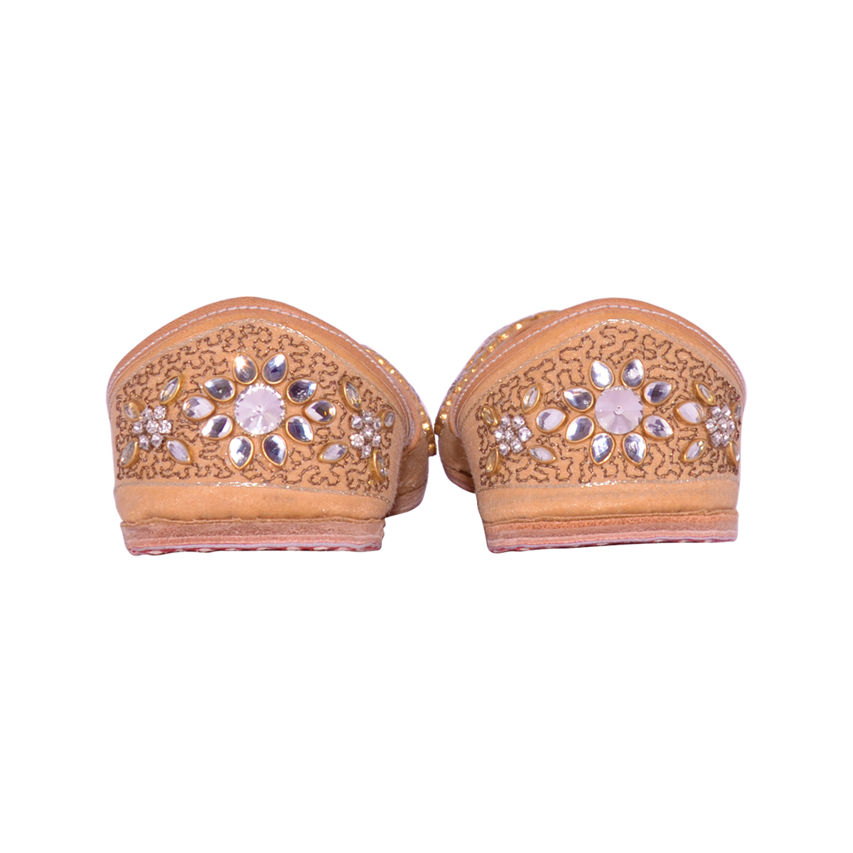 Explore in english - Women Peach Wedding Designer Punjabi Jutti, With Kundan work