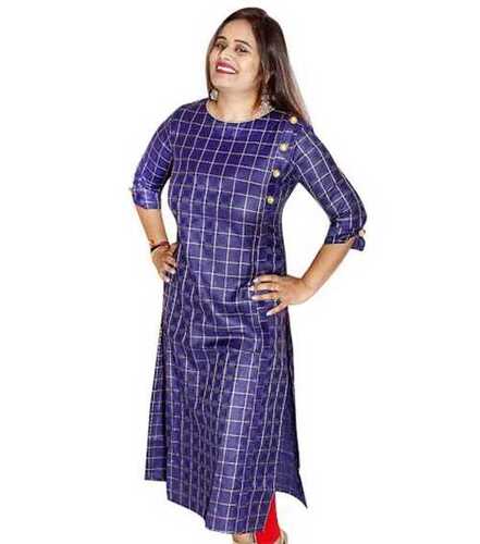 नीली महिलाओं के लिए पार्टी वियर 3/4 स्लीव रेयन गोल्ड प्रिंटेड लॉन्ग अनारकली कुर्ती