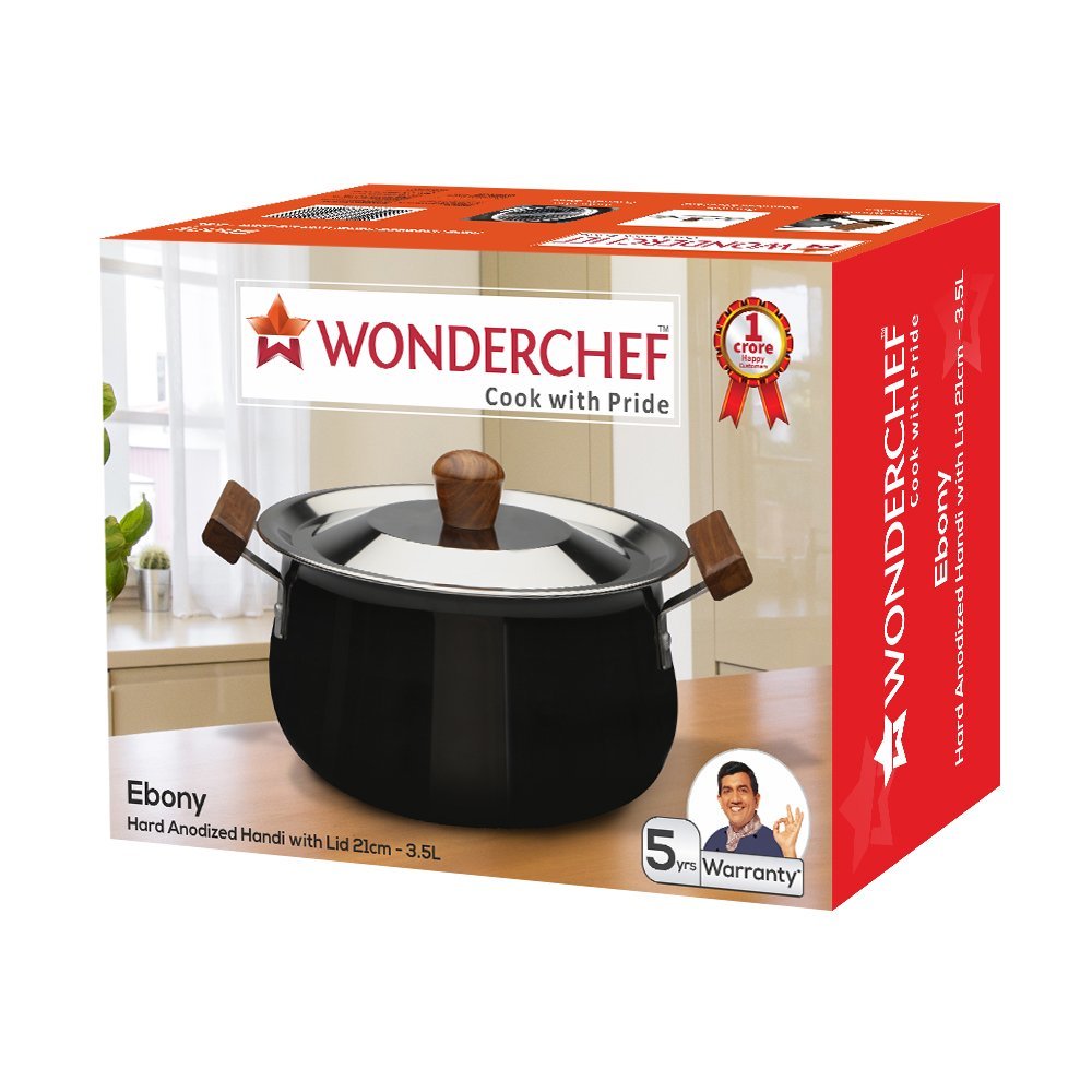 Wonderchef एबोनी हार्ड एनोडाइज्ड एल्युमीनियम हांडी ढक्कन के साथ, 3.5 लीटर/21cm, काला/भूरा