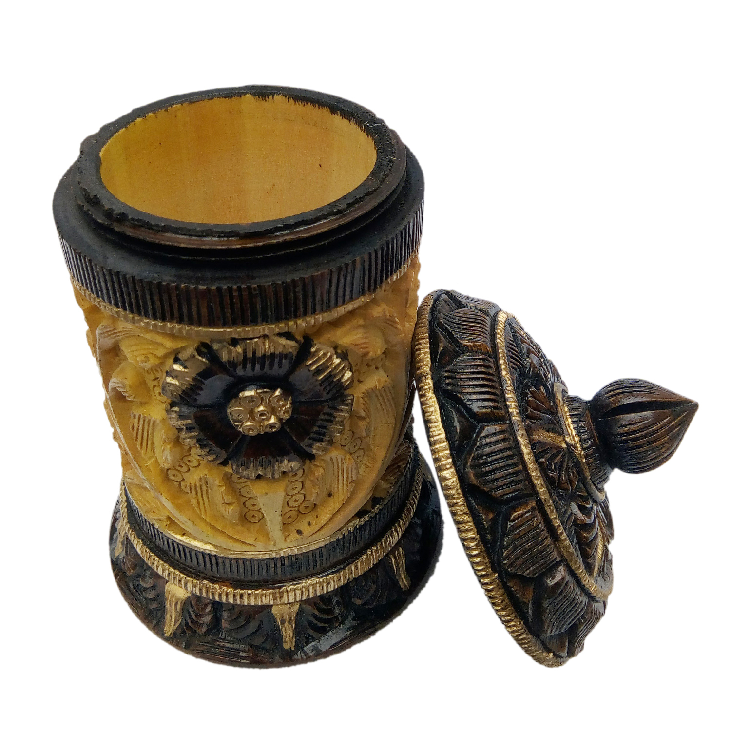 लकड़ी के बक्से पर नक्काशी प्राचीन