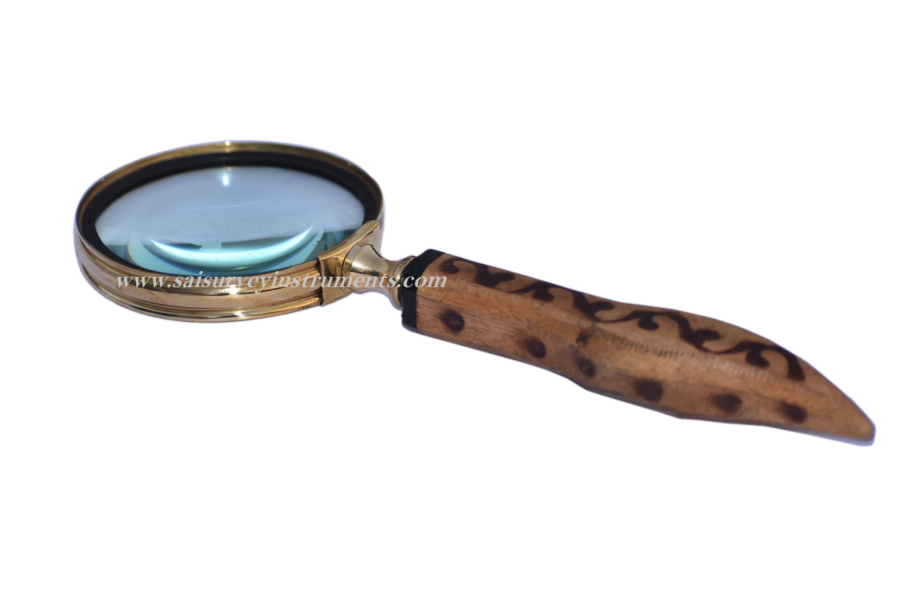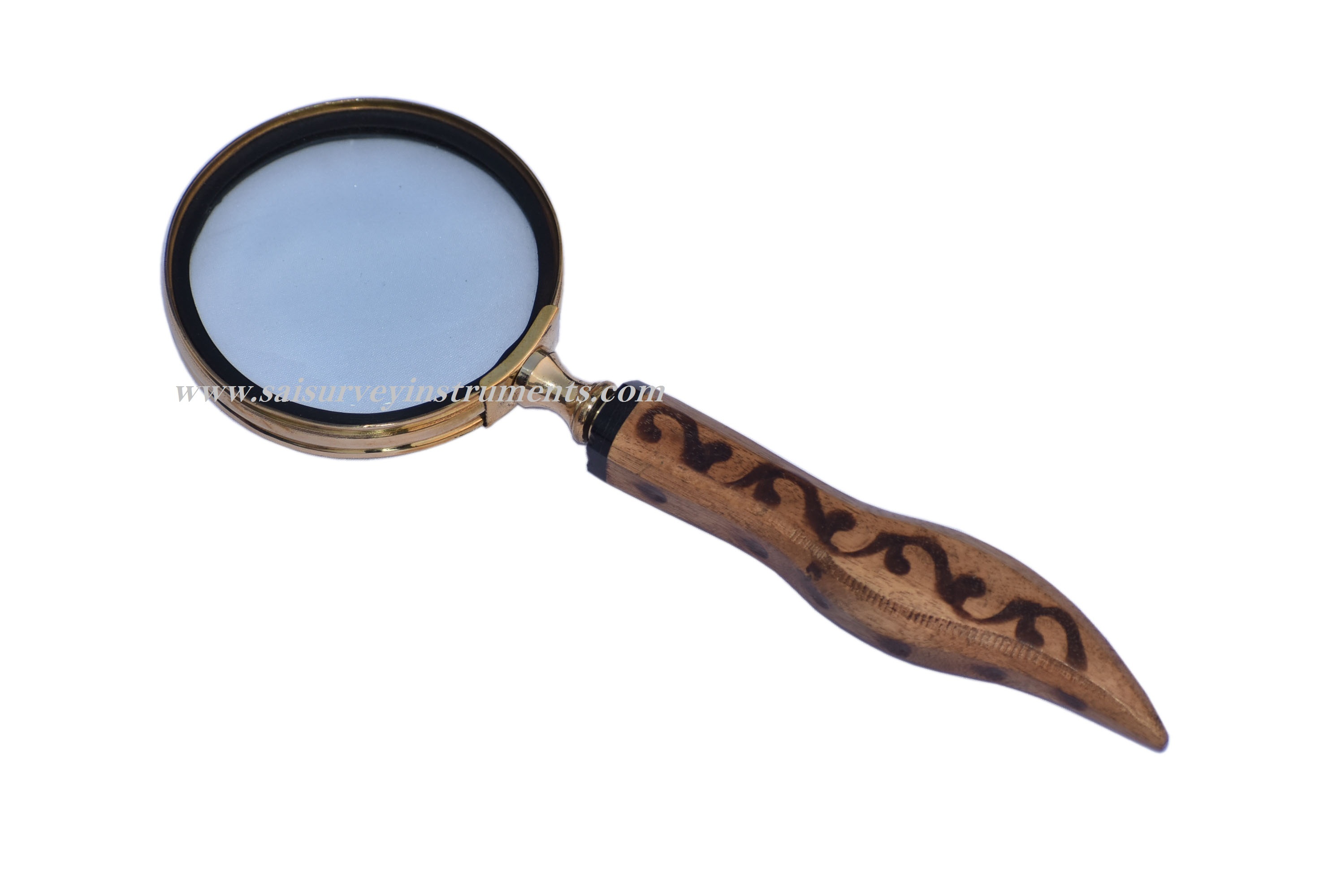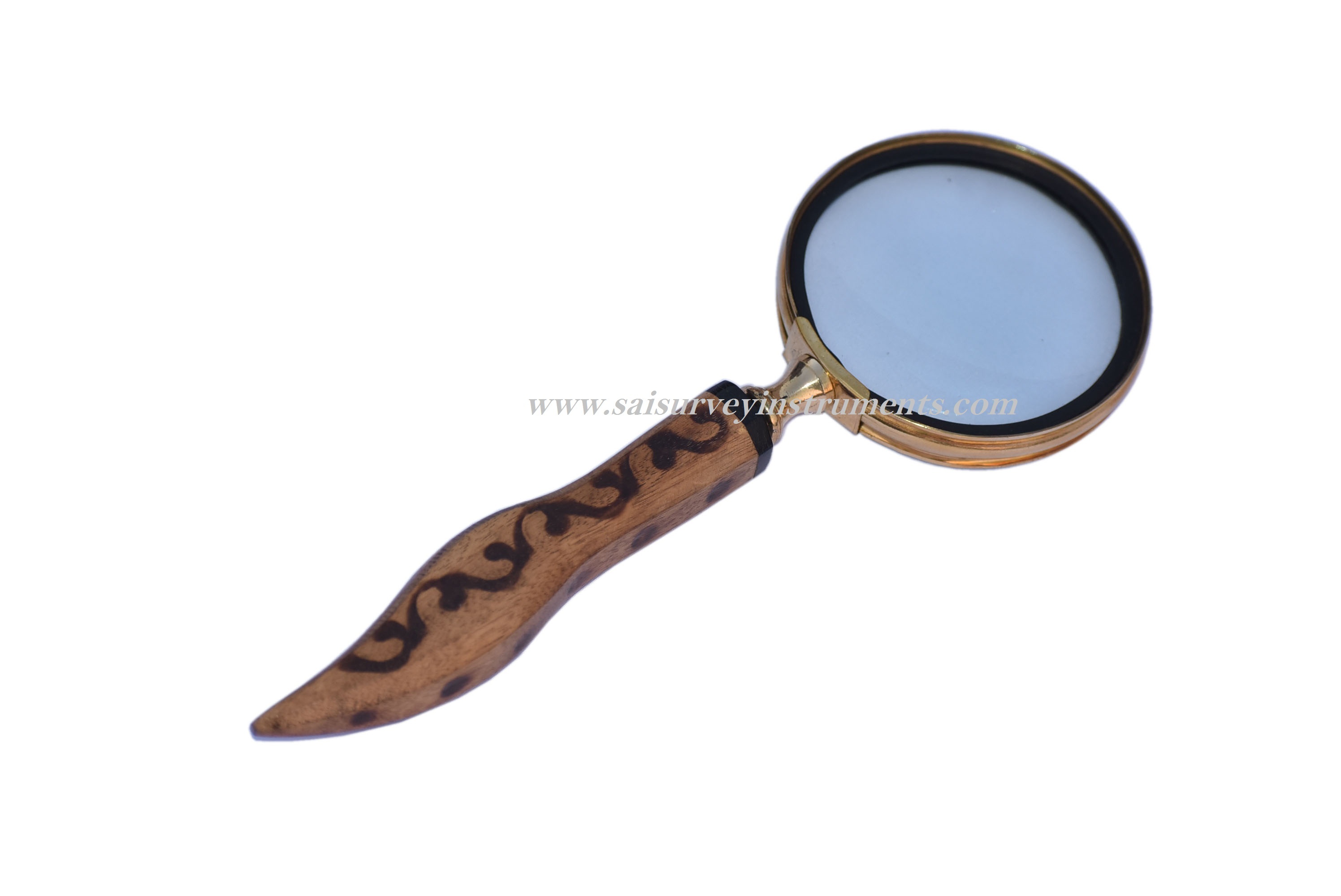 ब्राउन लीफ डिज़ाइन वुडन हैंडल मैग्निफ़ायर