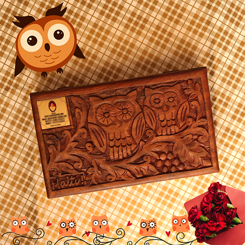 - लकड़ी का उल्लू उपहार पैक बॉक्स