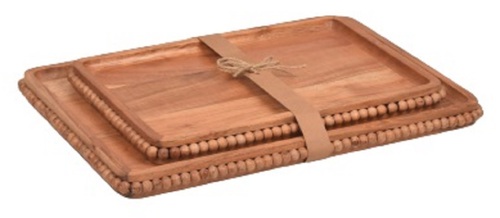 Explore in english - Wooden Rectangular Beads Pedestal Platter