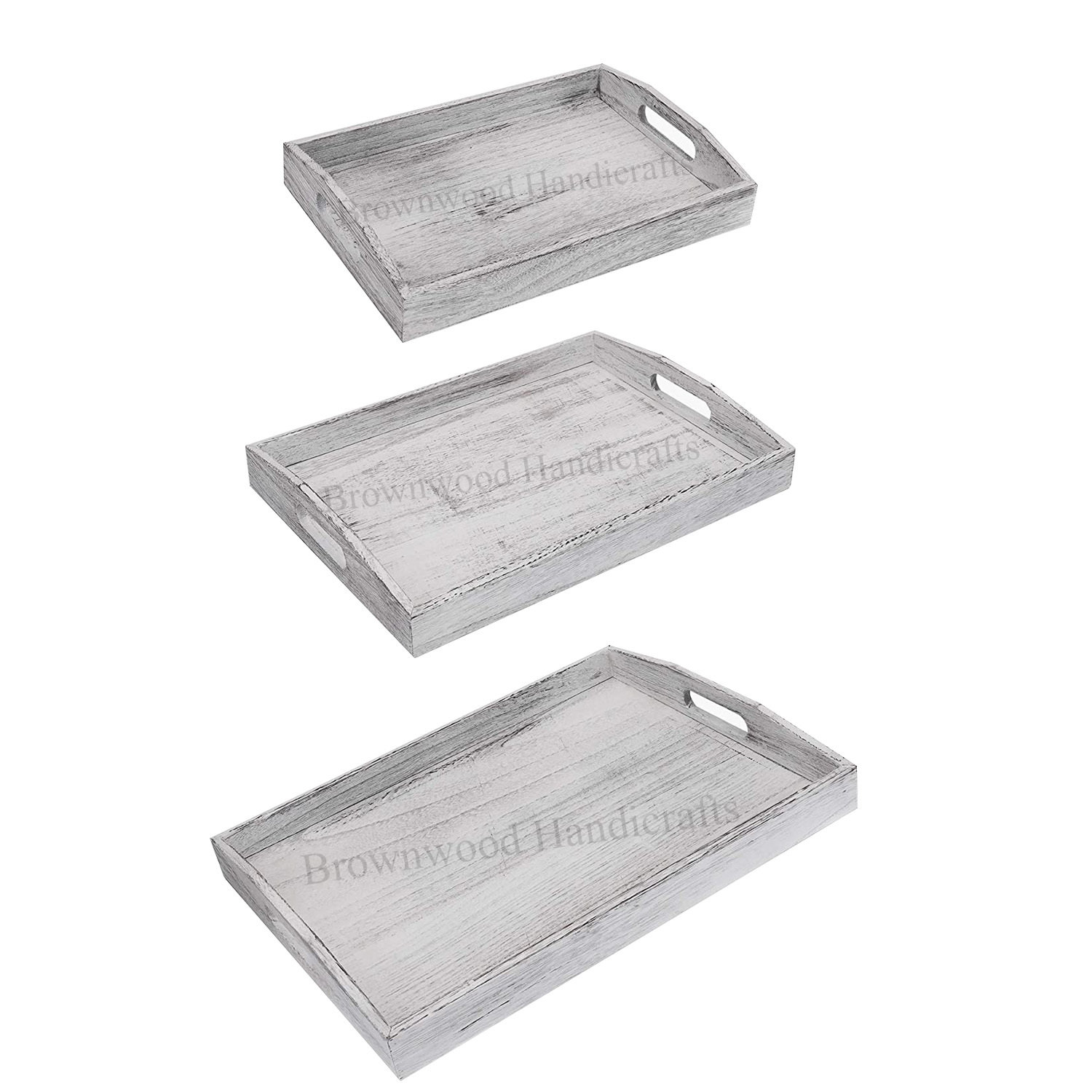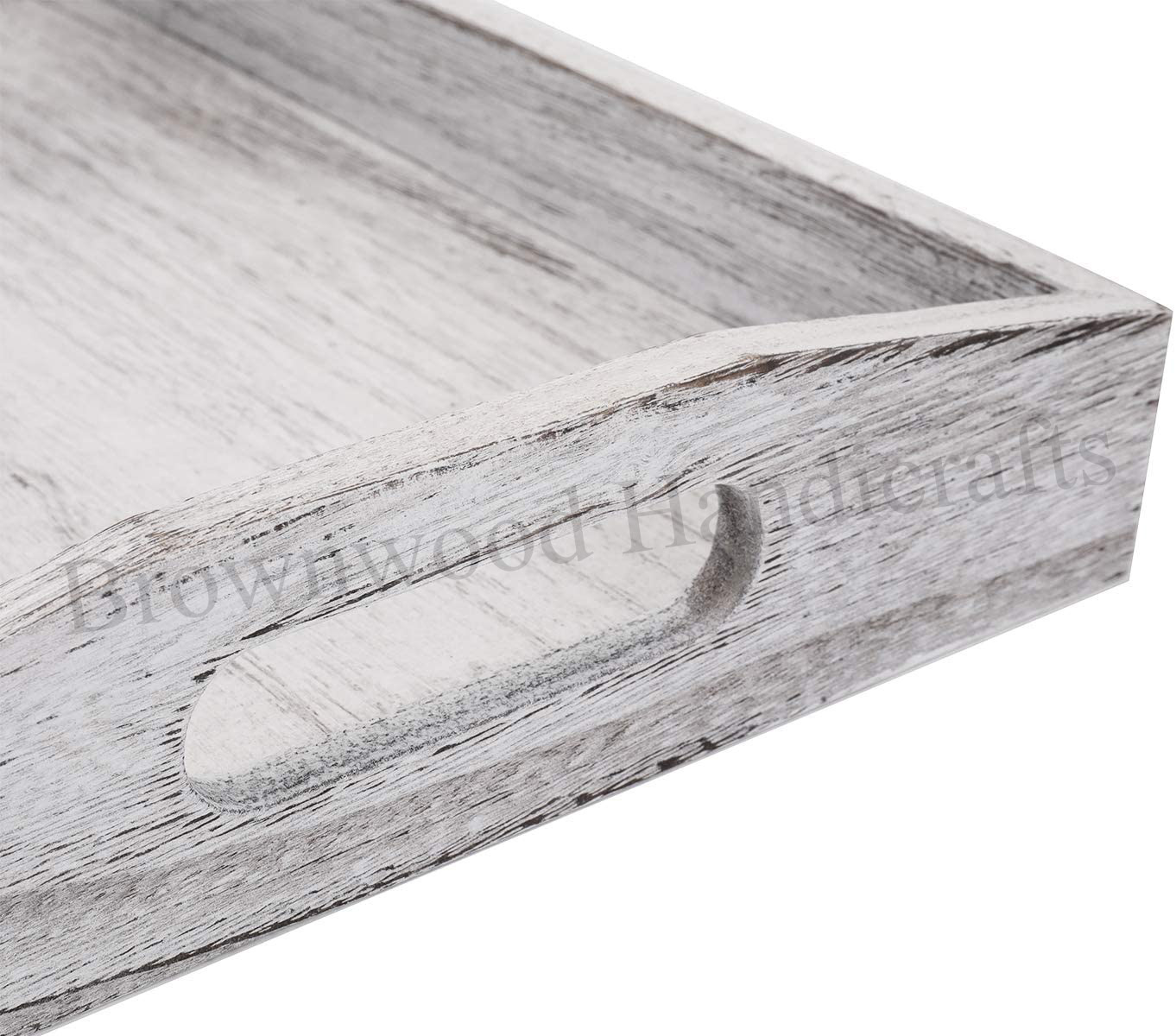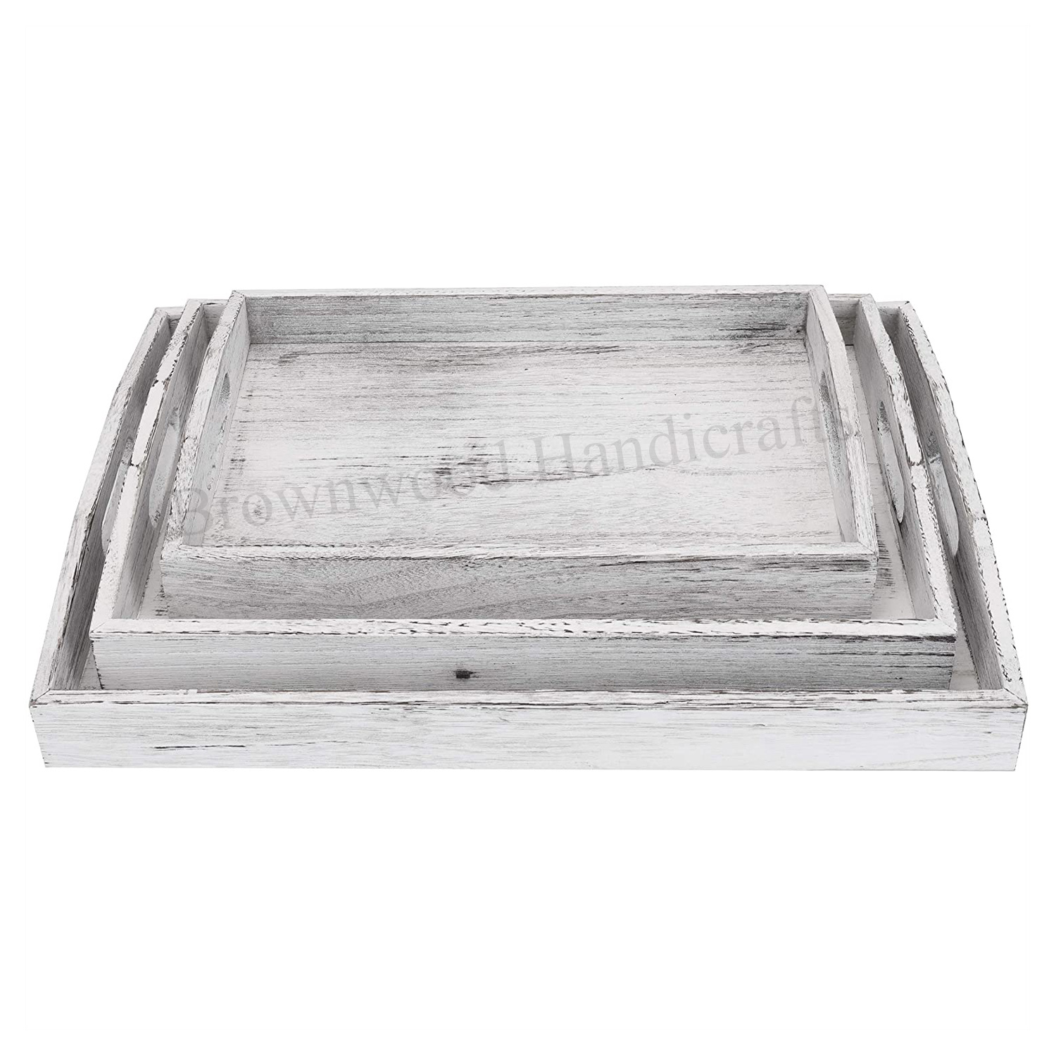 बर्न्ट व्हाइट एंटीक वुडन सर्विंग ट्रे