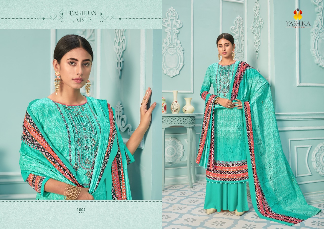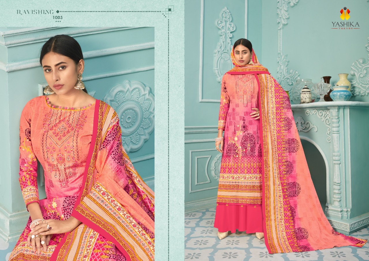 मल्टी कलर याशिका जुल्फत वॉल्यूम 1 प्योर लॉन कॉटन प्रिंटेड ड्रेस मटेरियल कैटलॉग
