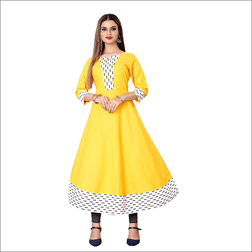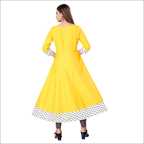 सफेद पट्टा के साथ पीली अनारकली कुर्ती