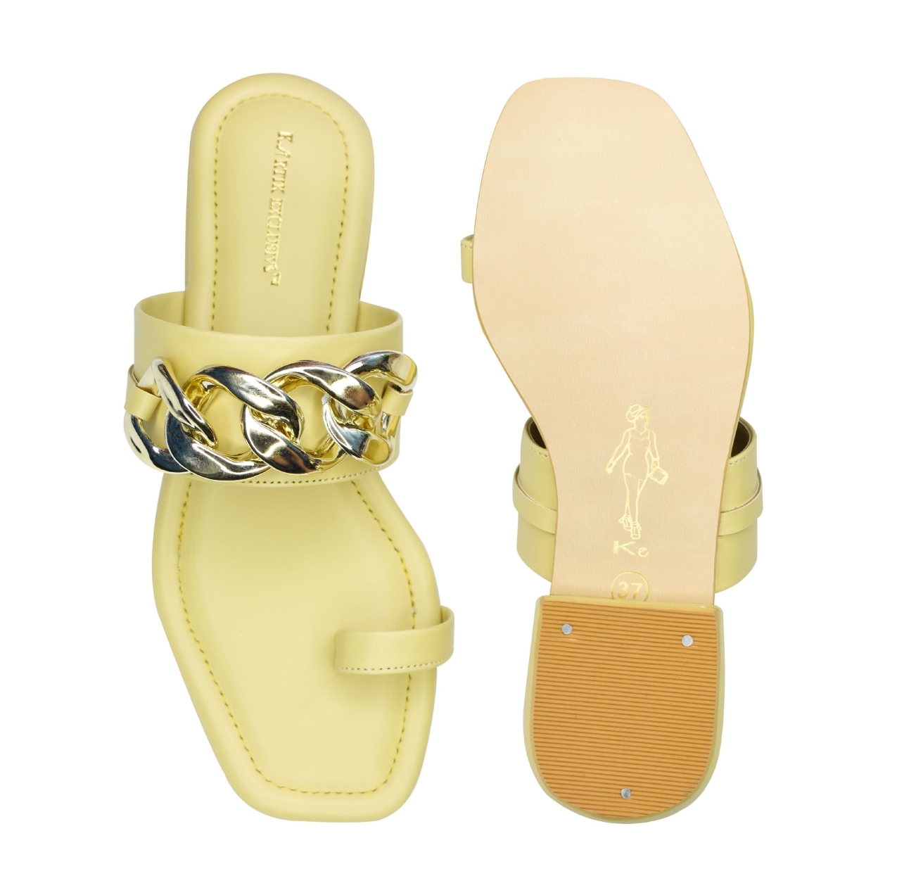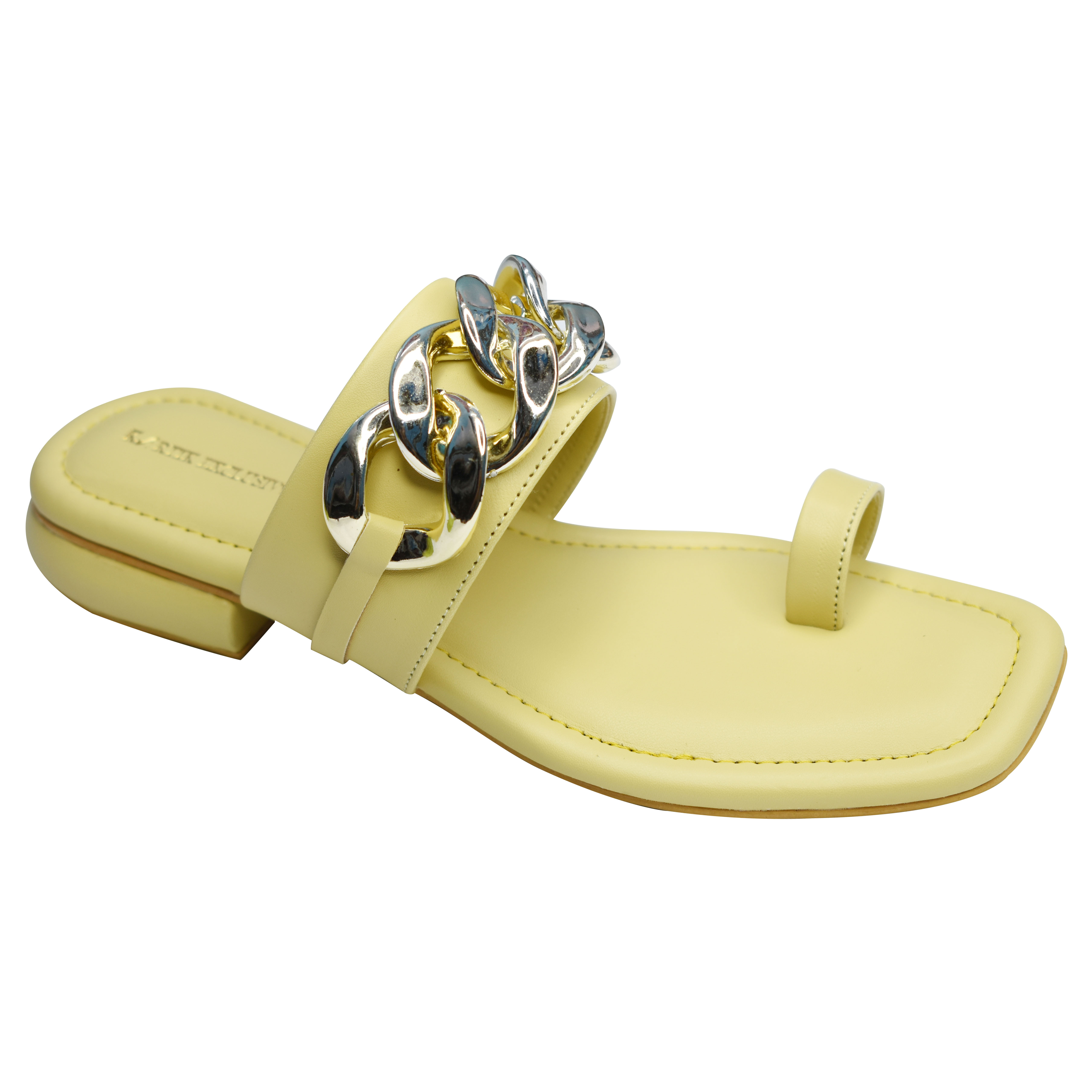Explore in english - Yellow Color Golden Chain Thumb Flats Sandal
